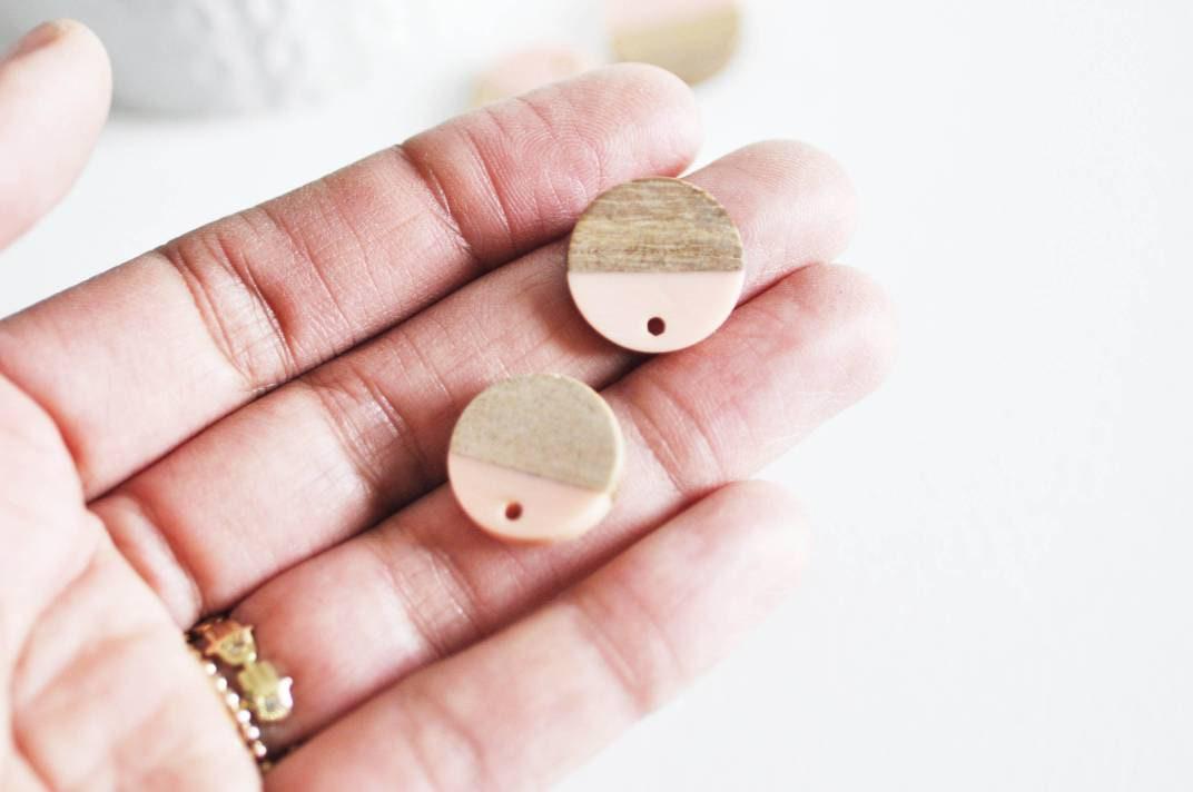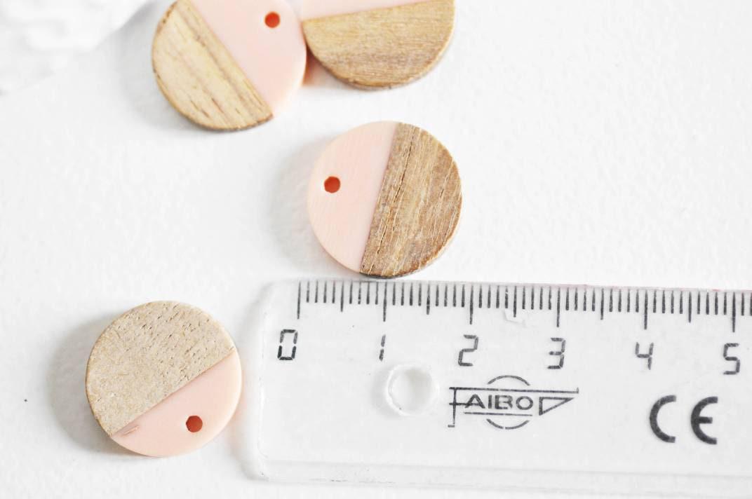Colgantes de disco de madera y resina rosa que permiten realizar colgantes muy bonitos o bucles completos de espíritu geométrico.