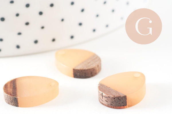 perle goutte bois résine beige 17.5mm, création bijoux bois x5 G2055