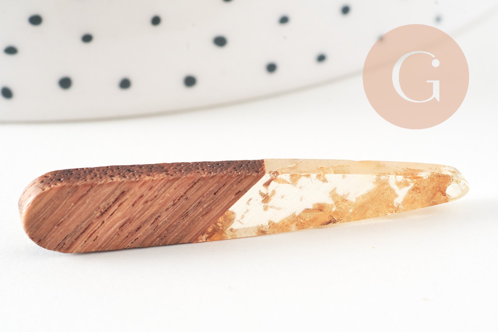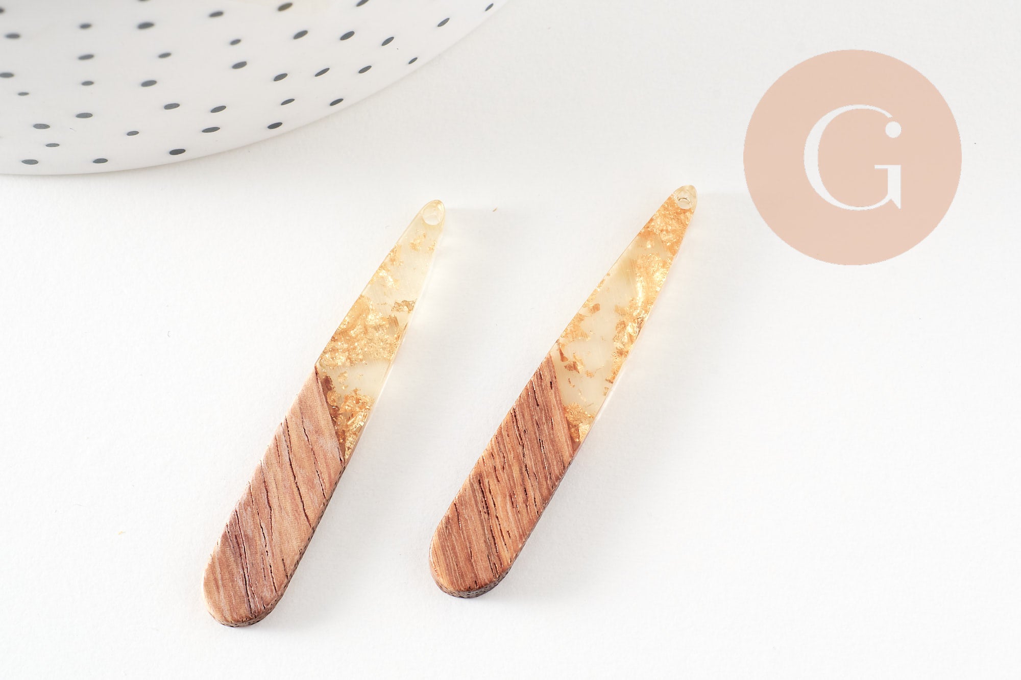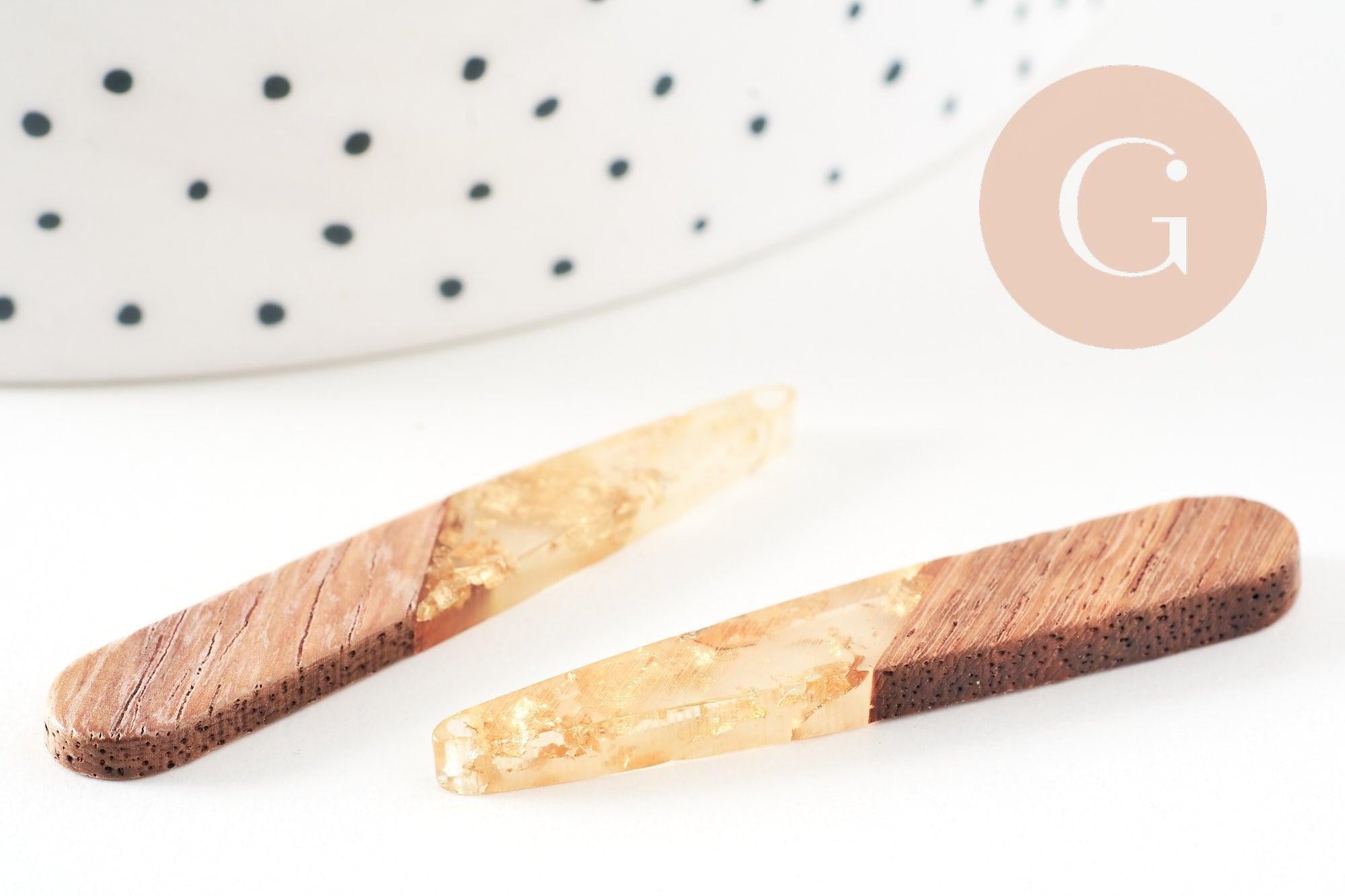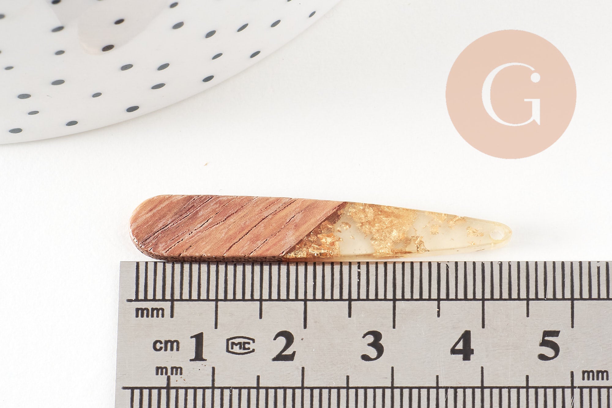 colgante de gota de madera resina hoja de oro 44 mm, madera natural, creación de joyería de madera, x2, G2518