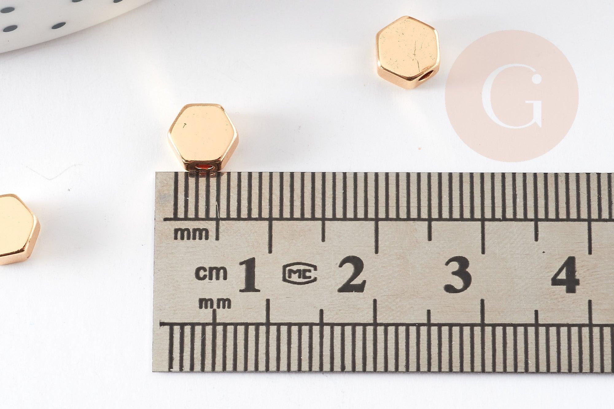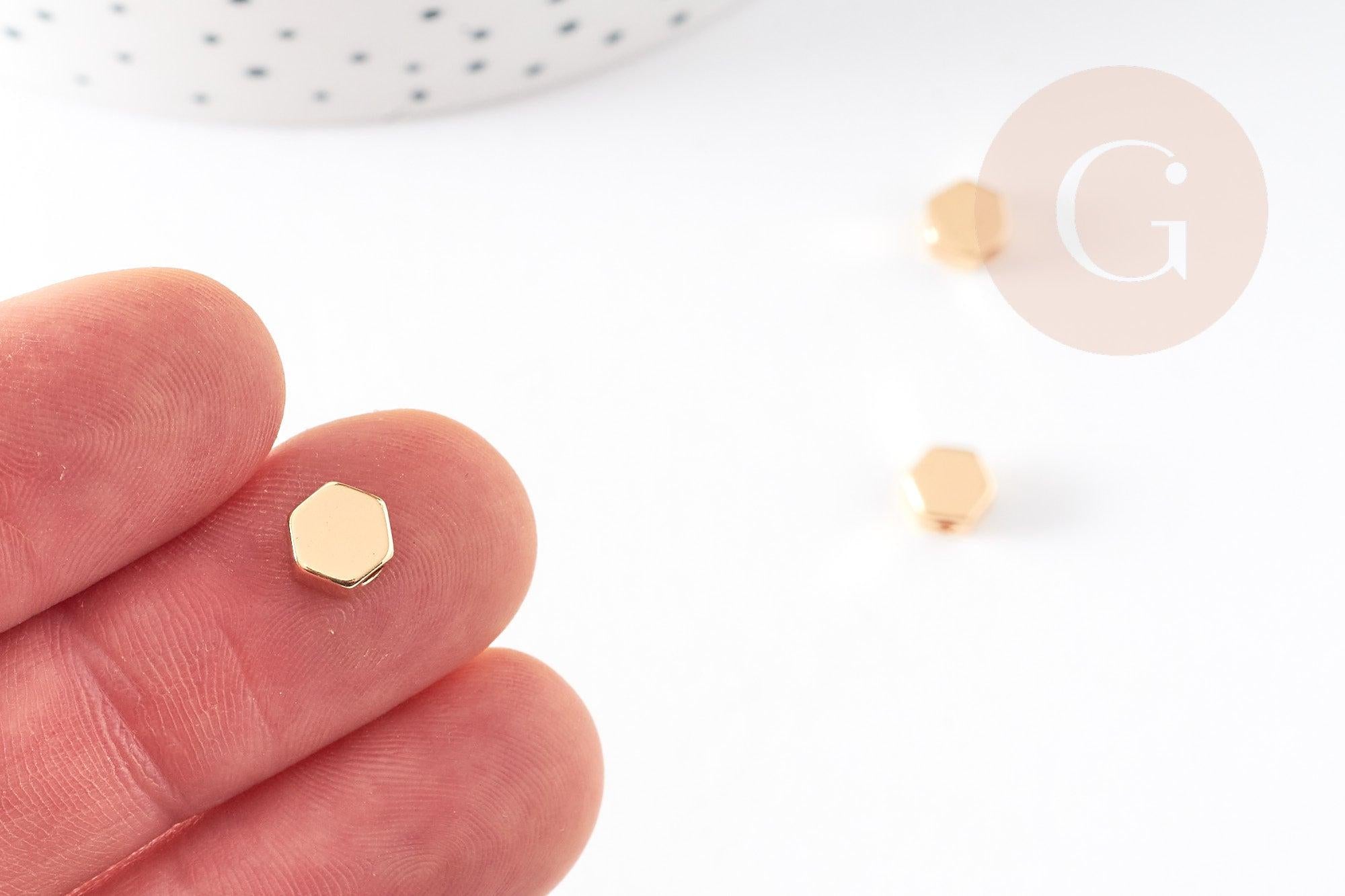 Cuenta hexagonal de latón bañada en oro de 18k, cuenta hexagonal, sin níquel, creación de joyas, cuenta geométrica, 5 mm, x10 G0865