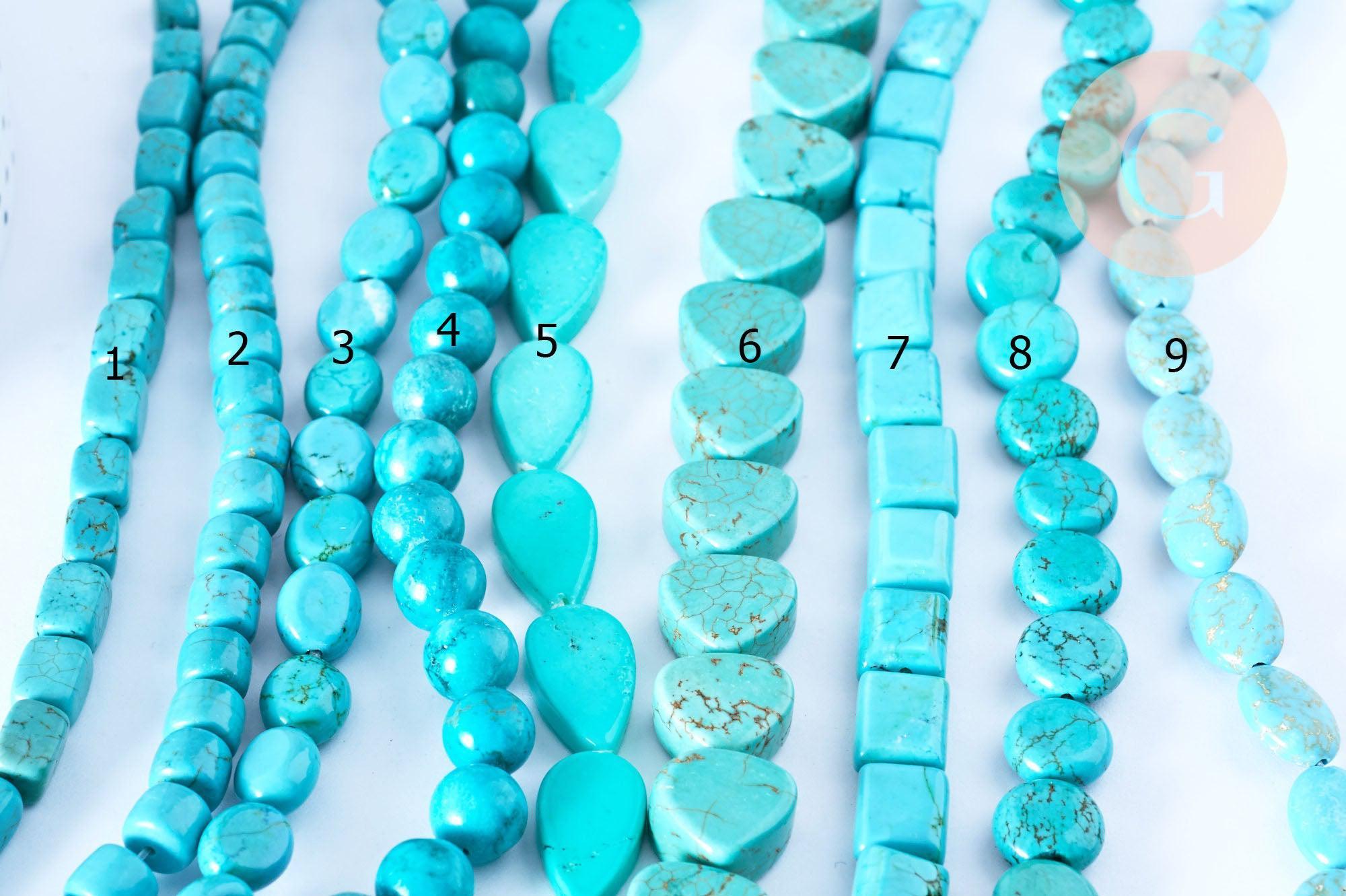 Estas piedras de joyería de howlita teñidas naturales te permitirán crear joyas únicas y originales. Estos son de forma mixta y de color azul turquesa.