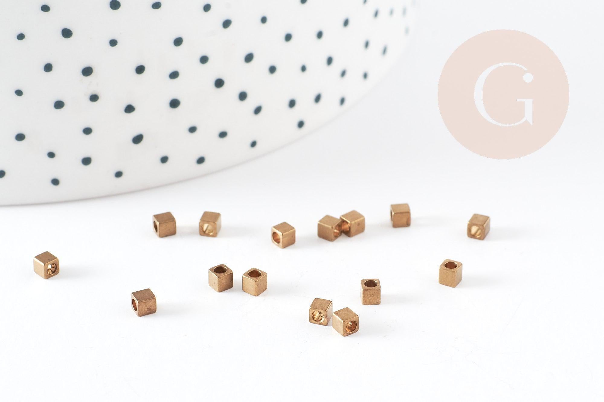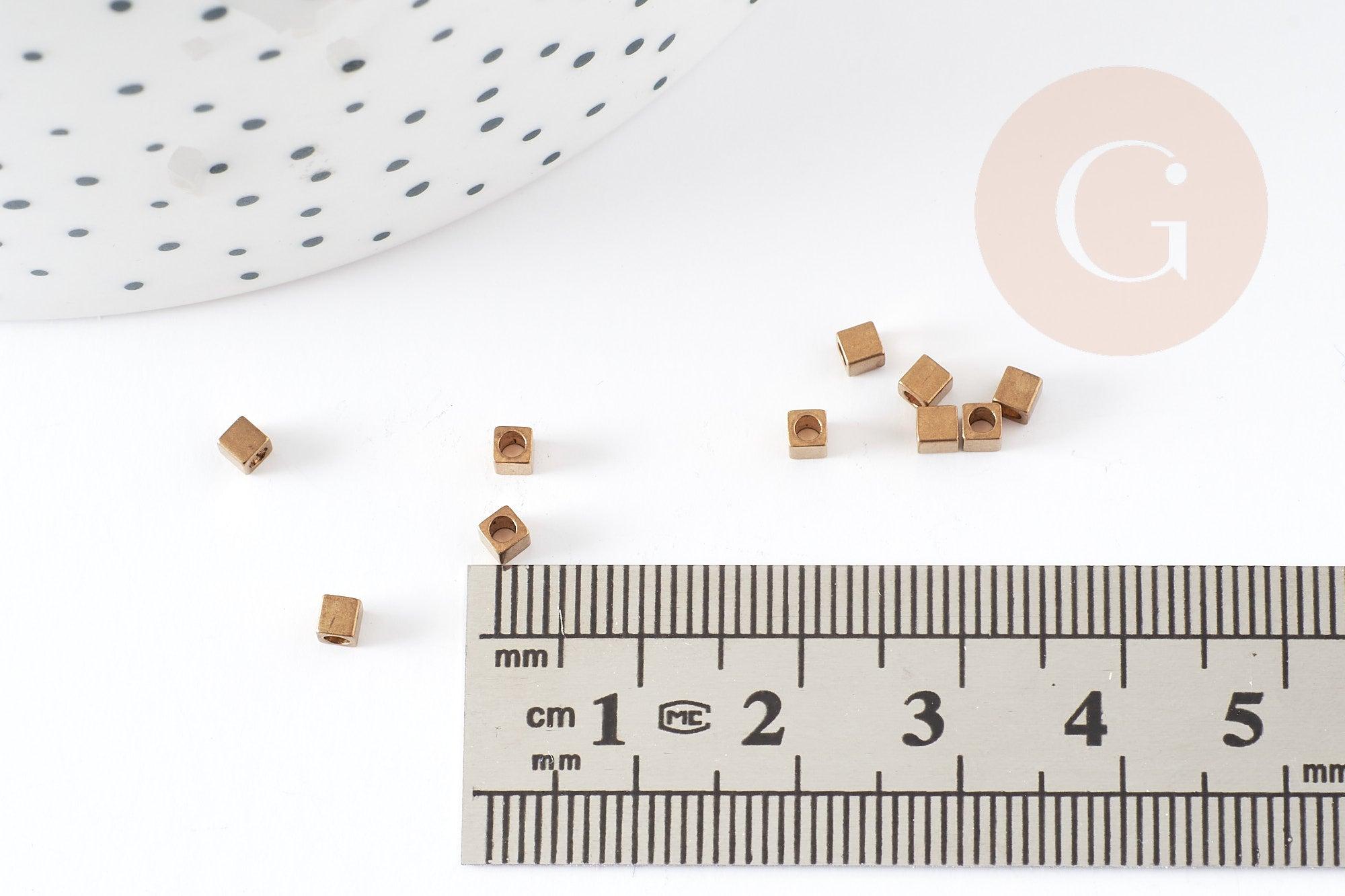 Cuenta espaciadora cuadrada de latón crudo, suministros creativos, cuentas de latón, cuentas doradas, latón crudo, 2,5 mm, x100 (7,3 g) G0082