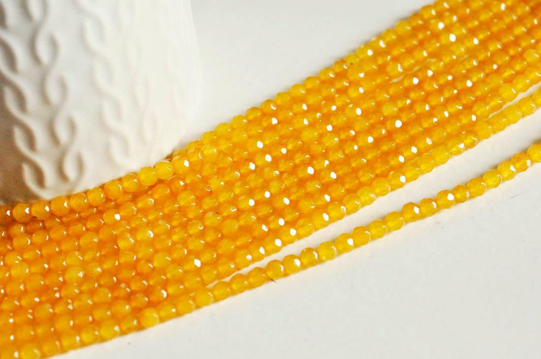 Cuenta de jade amarillo brillante, suministro creativo, cuenta de jade, piedra natural, jade natural, cuenta de piedra, cuenta facetada, jade, 4mm, hilo de 90 cuentas Una tira de 37 cm de cuentas de jade teñidas facetadas. Diámetro 4mm Agujero: 1mm...