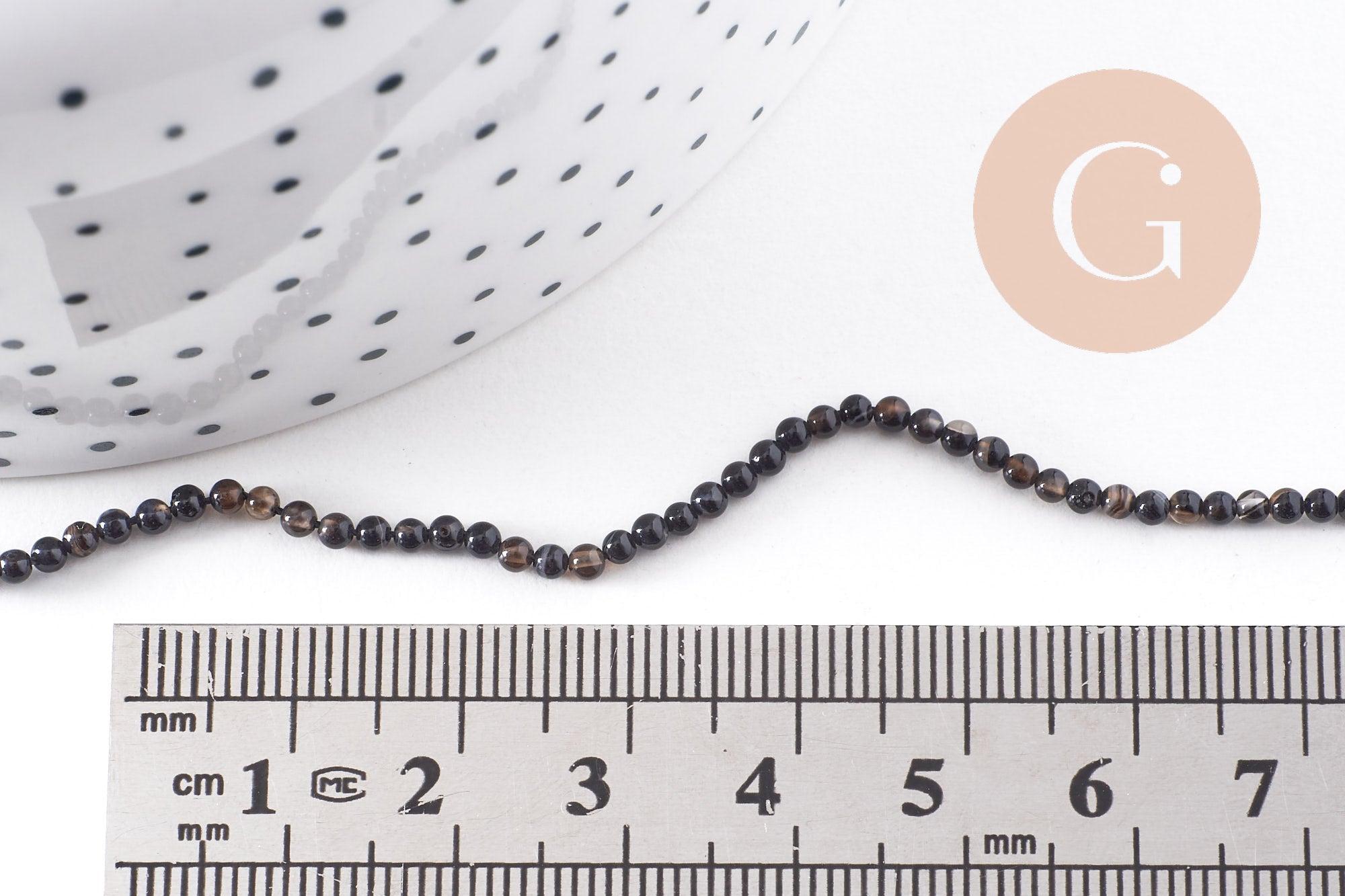 Perla de jade natural redonda teñida de negro de 2 mm, perla de piedra natural para creación de joyas, hilo de 39 cm, x1 (G1987)