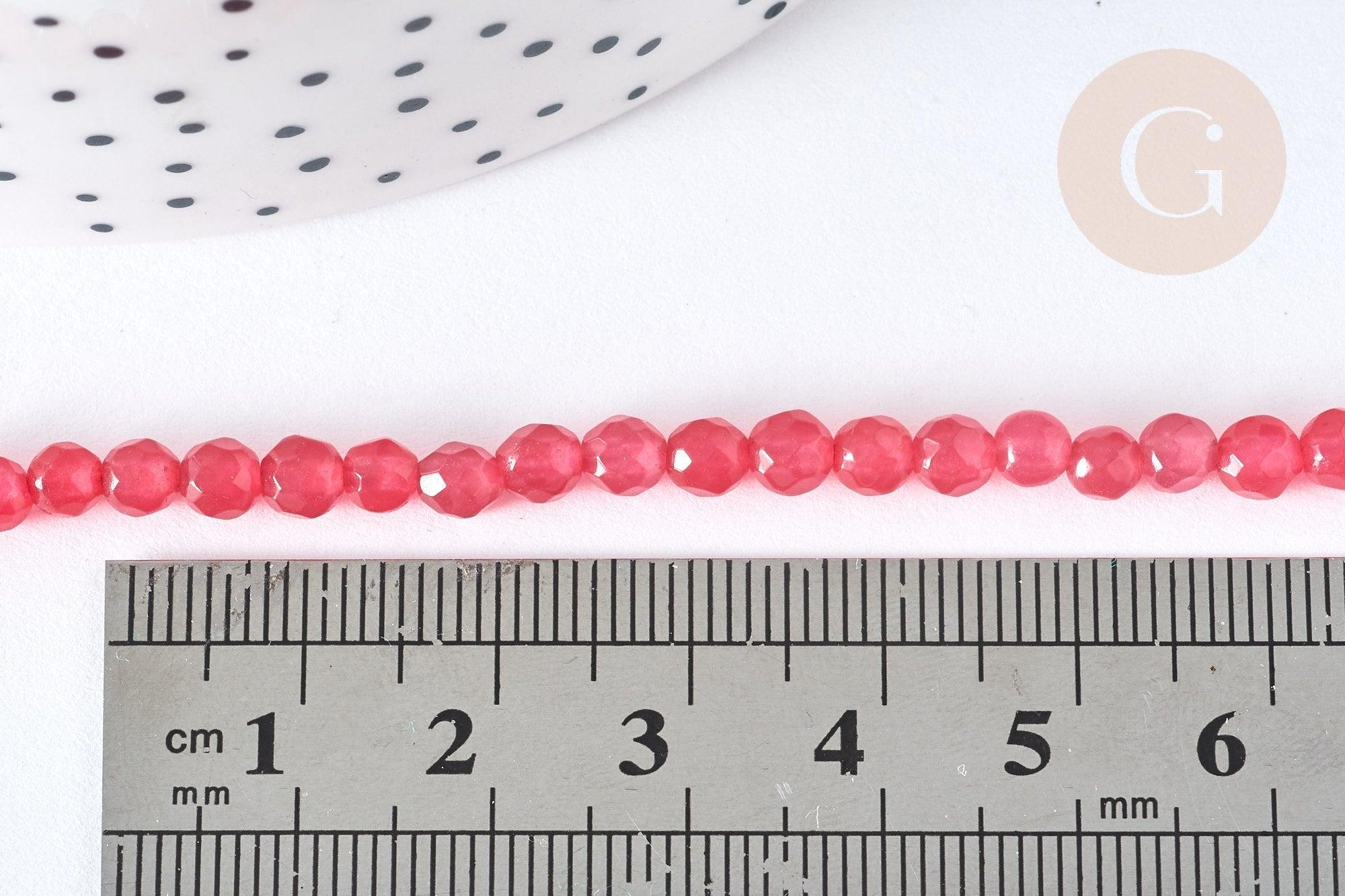 Perla de jade rosa brillante facetada, piedra natural, piedra, perla facetada, jade, 4 mm, hilo de 37 cm x1 (G5189)