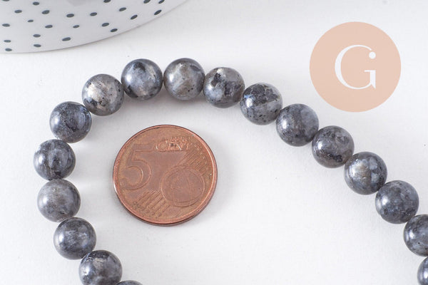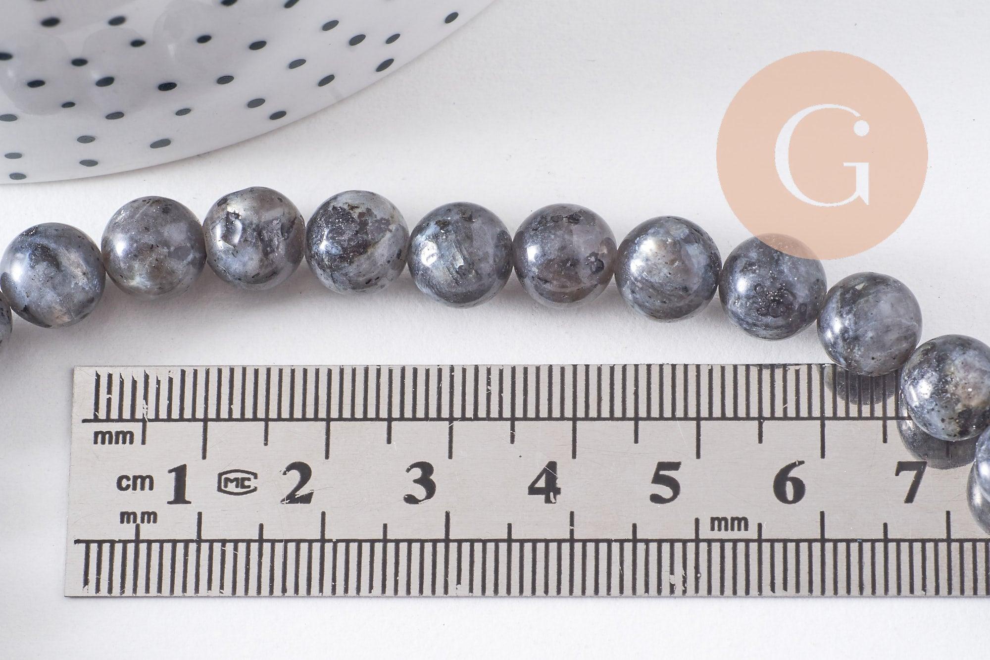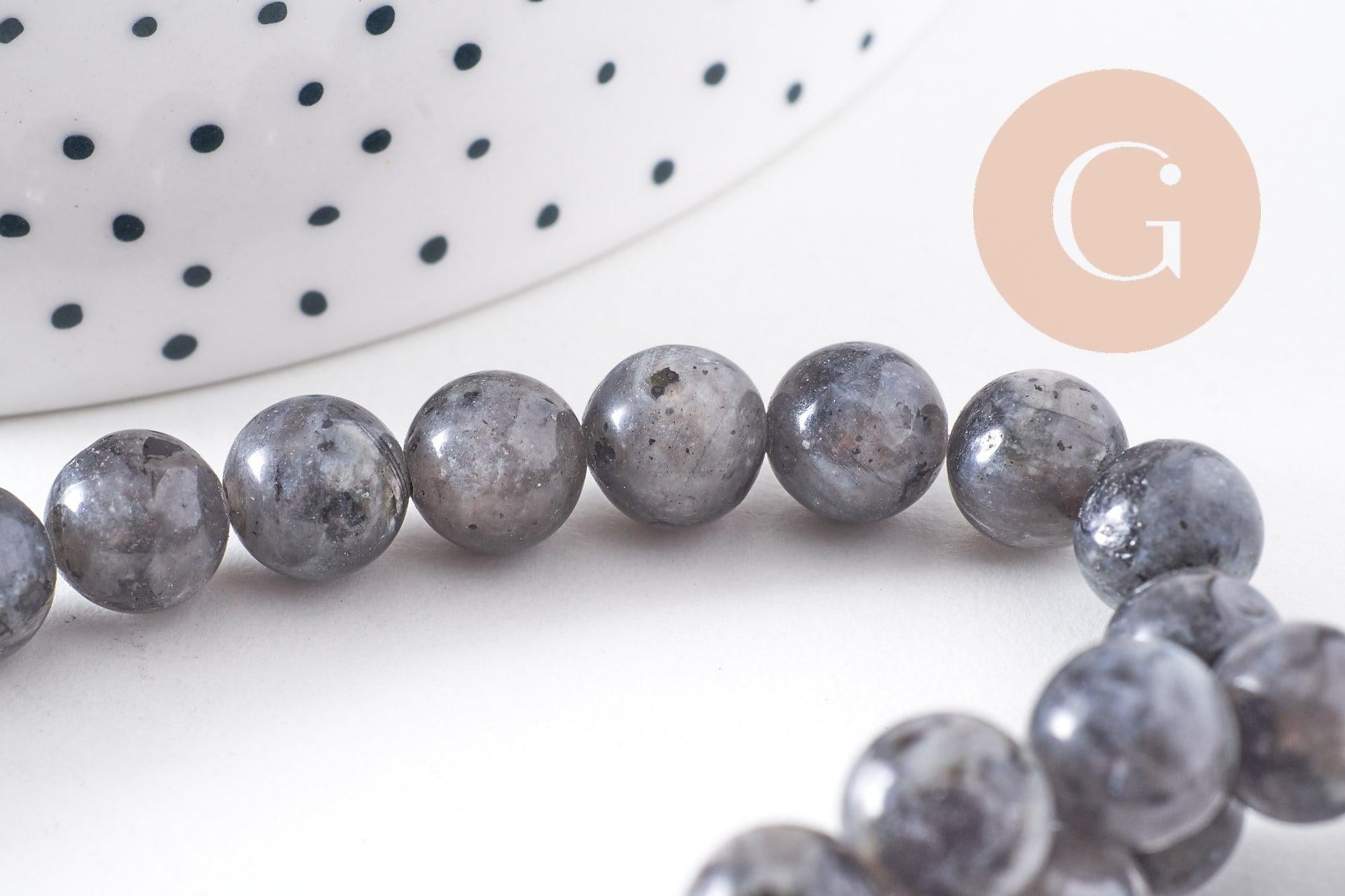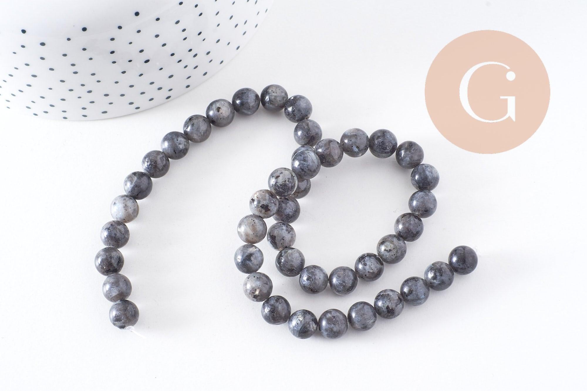 Perla de labradorita, piedra natural, labradorita natural, perla de piedra, 8 mm, x1 tira de 50 perlas, x1 (G6902)
