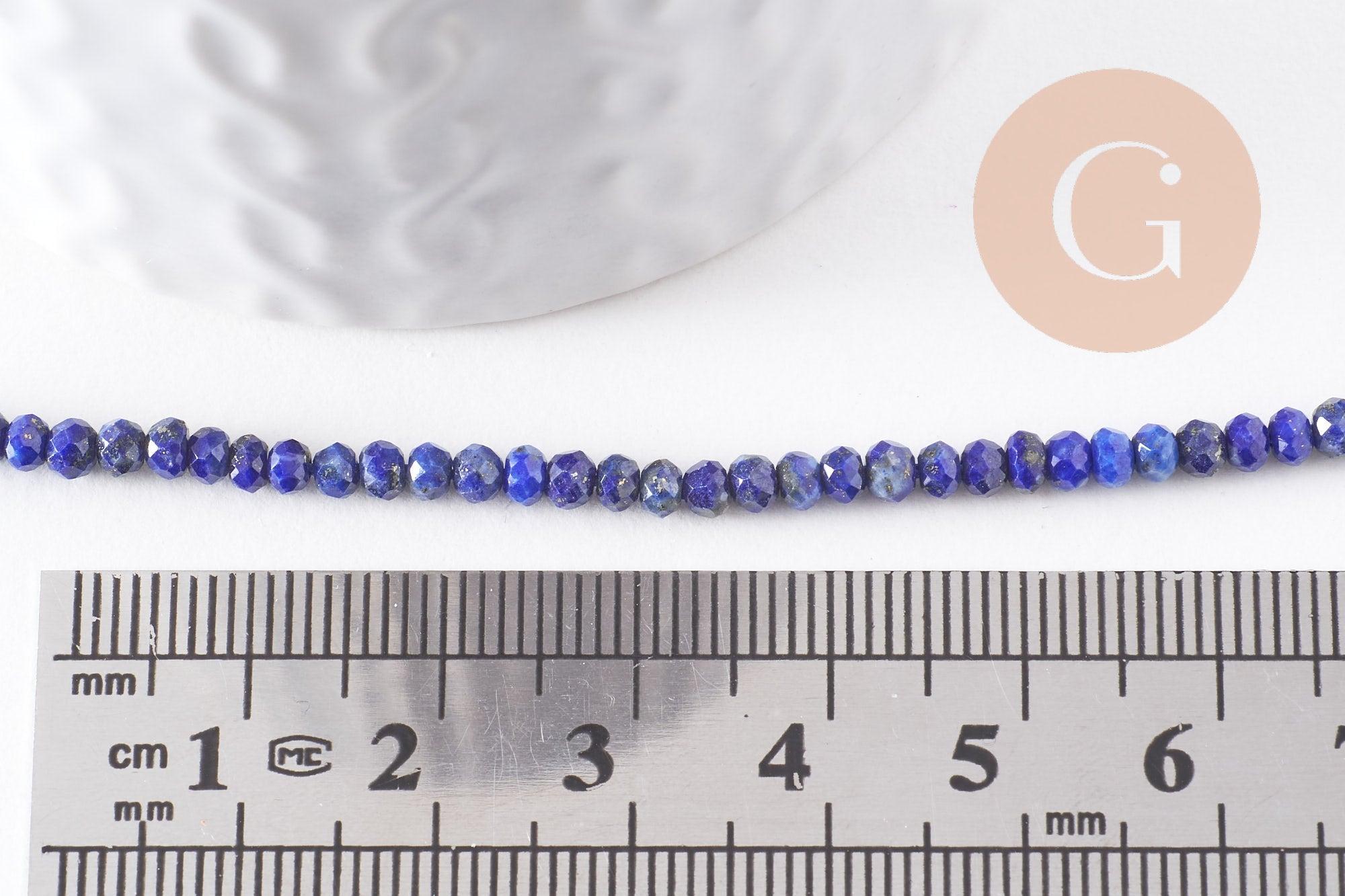 Cuenta de lapislázuli redonda facetada, joyería de piedra natural, lapislázuli natural, cuenta de piedra, 3x2 mm, alambre de 39 cm (G3558)