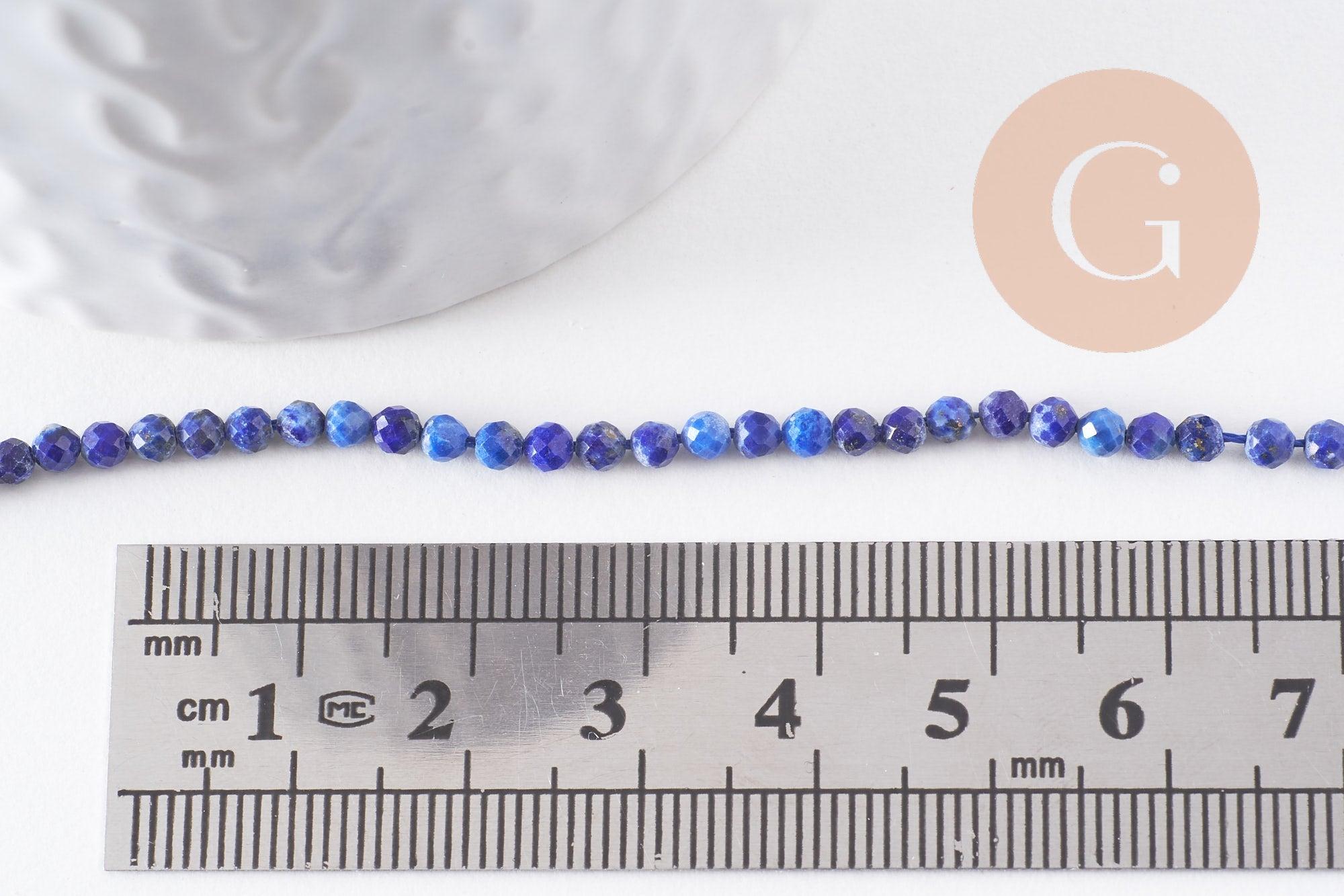 Cuenta de lapislázuli redonda facetada, joyería de piedra natural, lapislázuli natural, piedra natural, piedra, 3 mm, alambre de 39 cm (G3877)