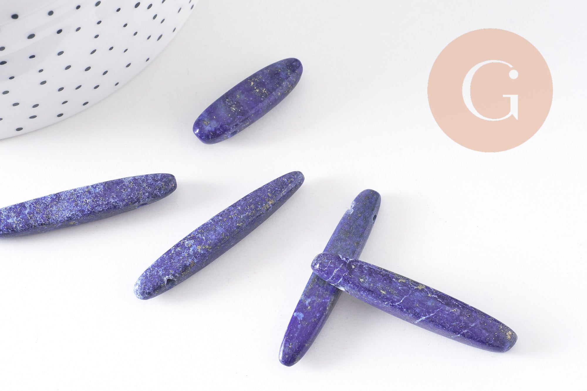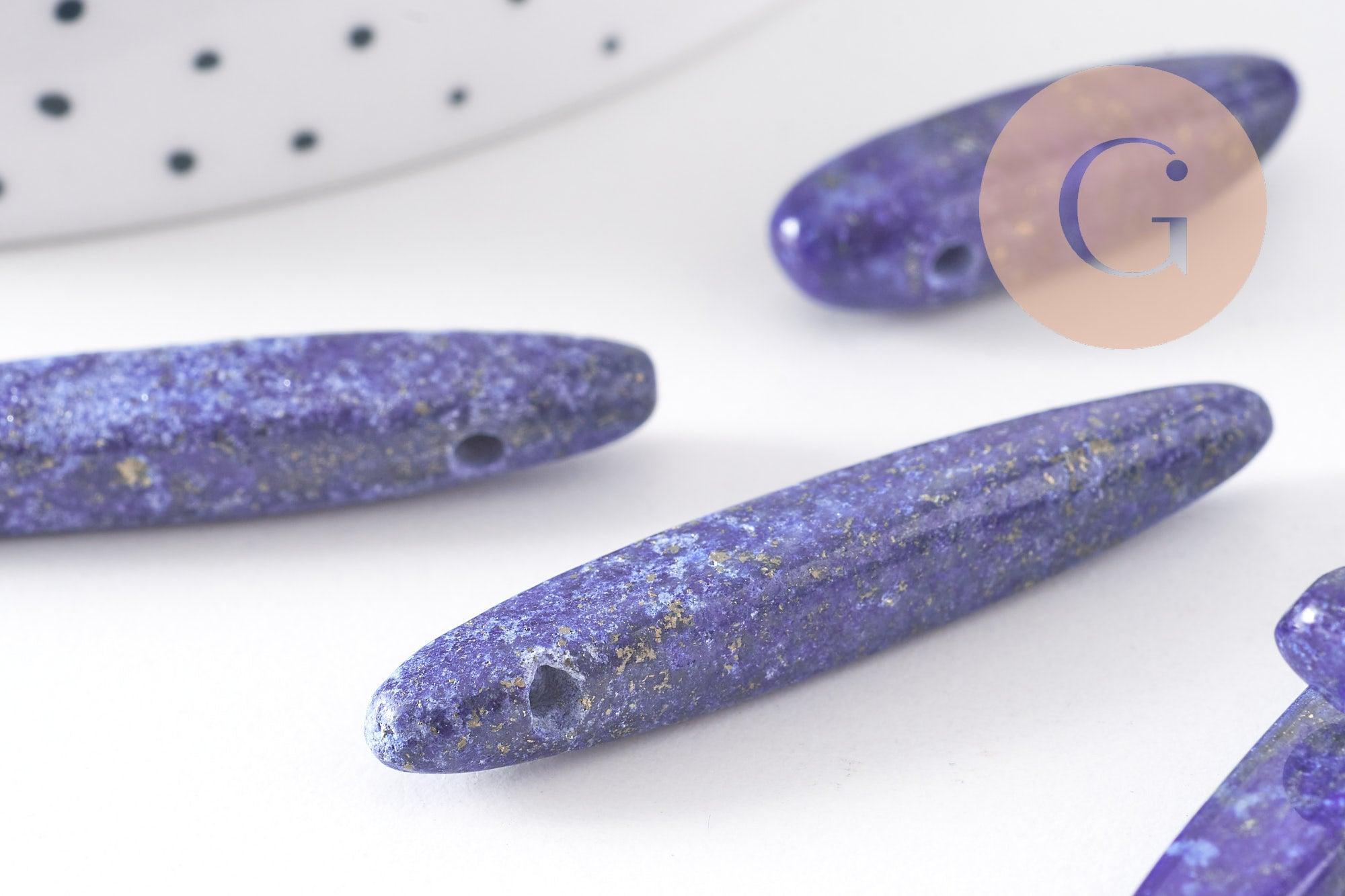 Perla de lapislázuli larga, piedra natural, lapislázuli natural, piedra rectangular, x5 (G2711)