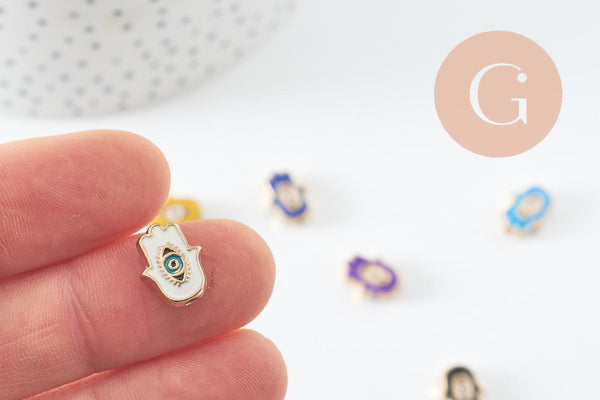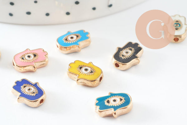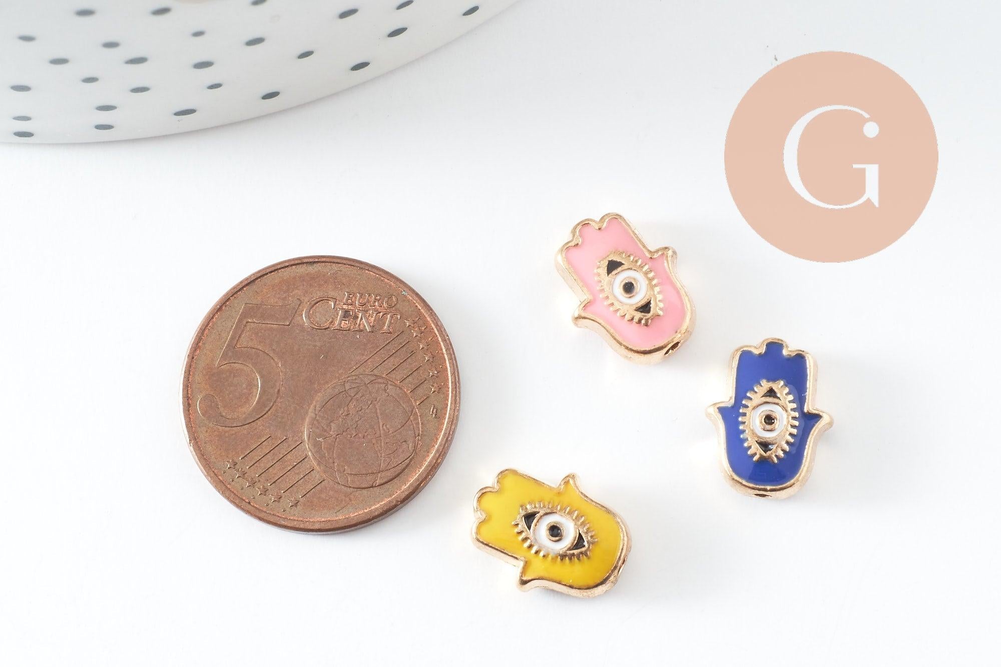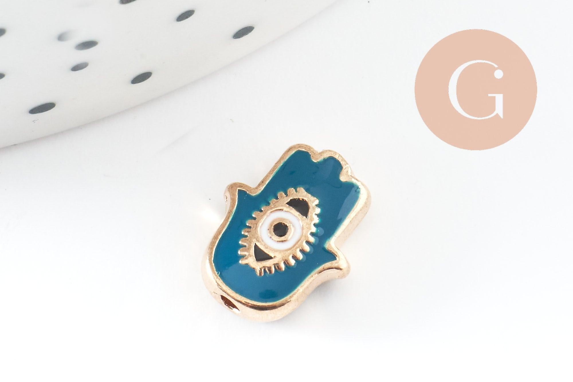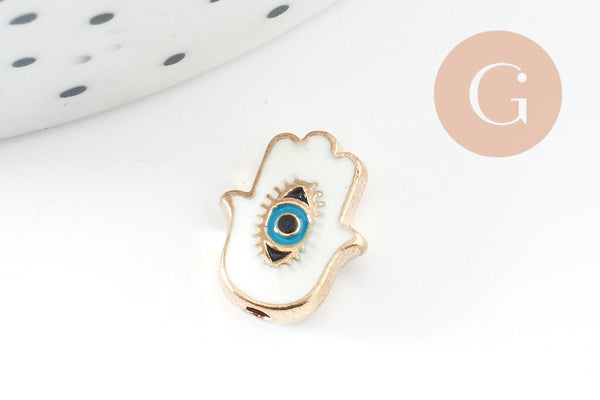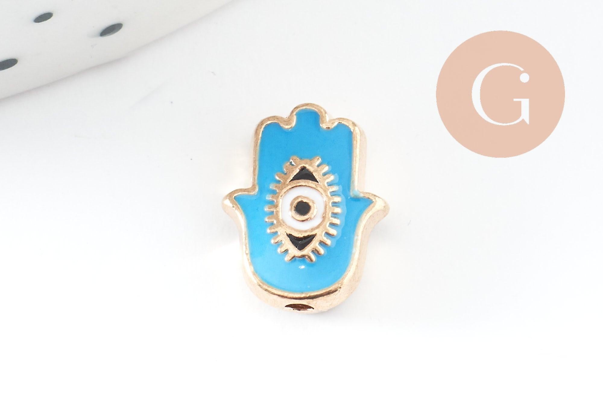 Adopte esta cuenta que representa una mano con el símbolo del ojo para sus creaciones de joyería DIY. Puedes hacer collares, pulseras, aretes, joyas para celular.