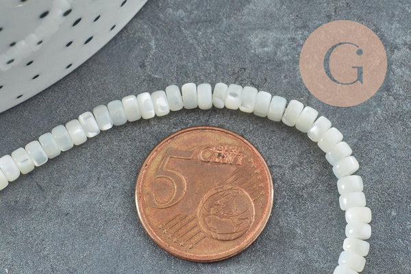 Perle nacre blanche naturelle heishi 2x4mm, x1 fil de 20cm (G4475)