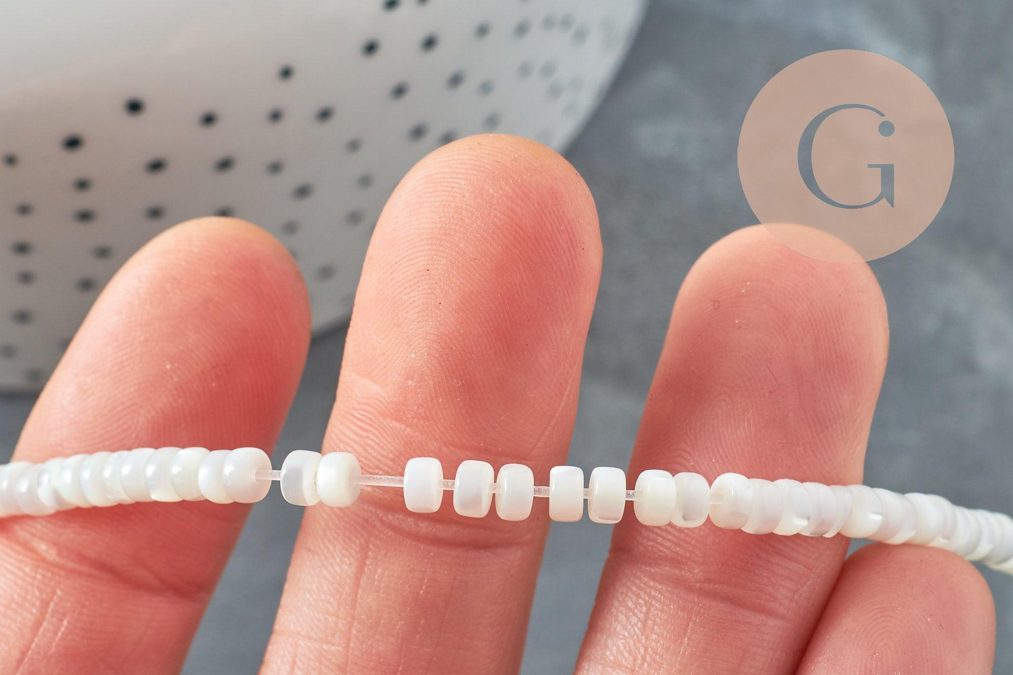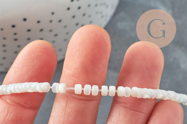 Cuenta de nácar blanco natural heishi 2x4mm, x1 tira de 20cm (G4475)