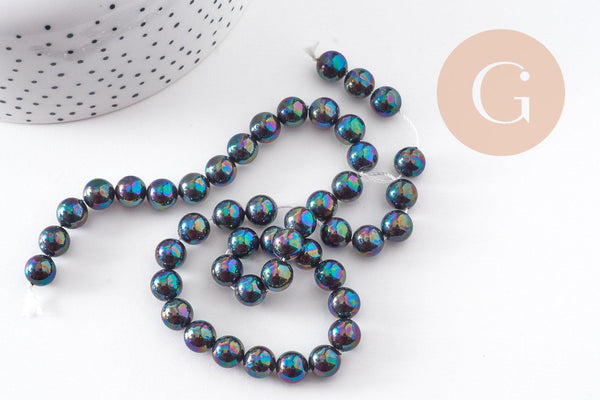 Perle nacre naturelle noire 8mm eau douce, le fil de 40cm x1 (G10912)