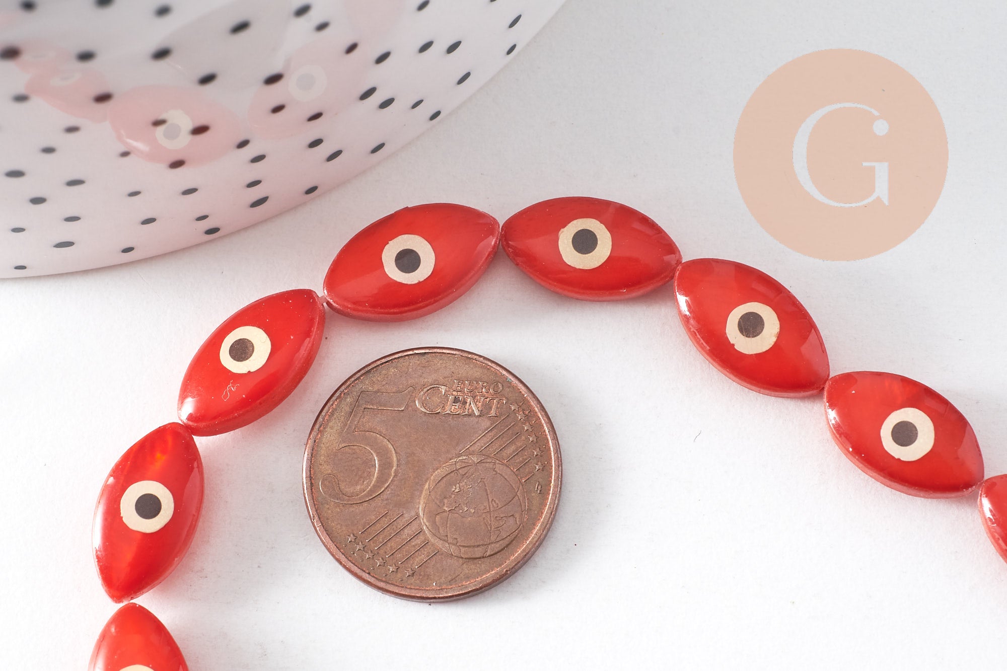 Cuentas de nácar coloridas con forma de ojo malvado, amuleto de la suerte, gri-gri, 15 mm, tira de 25 cuentas, x1 (G0300)