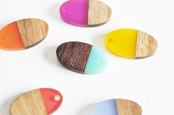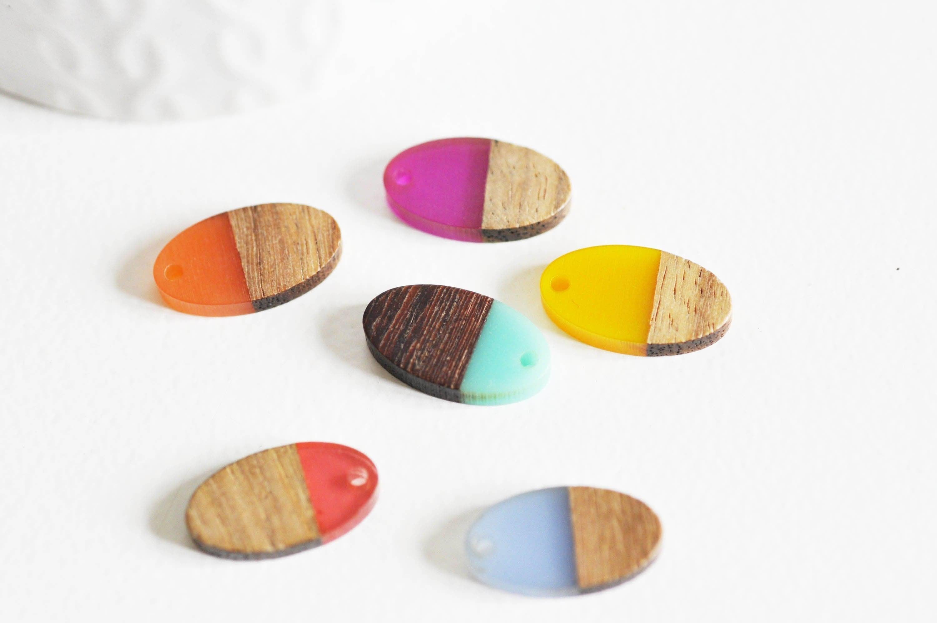 pendentif ovale bois résine 20mm, bois naturel, perles bois, Perles géométriques,perle ovale,perle ronde bois création bijoux bois, x5 G1465