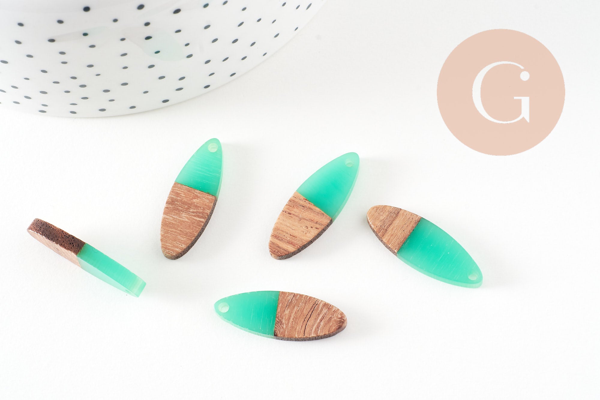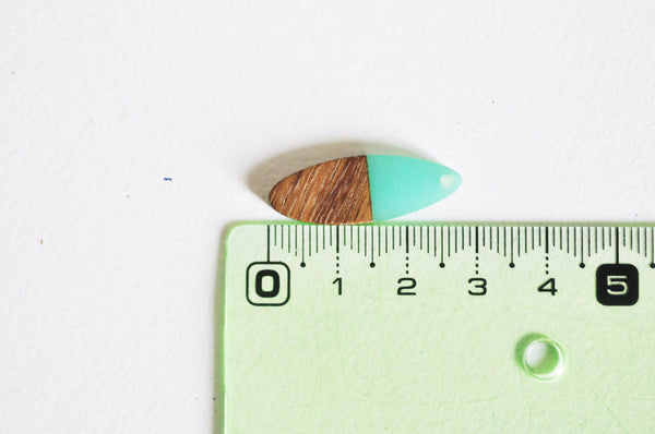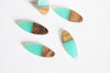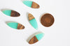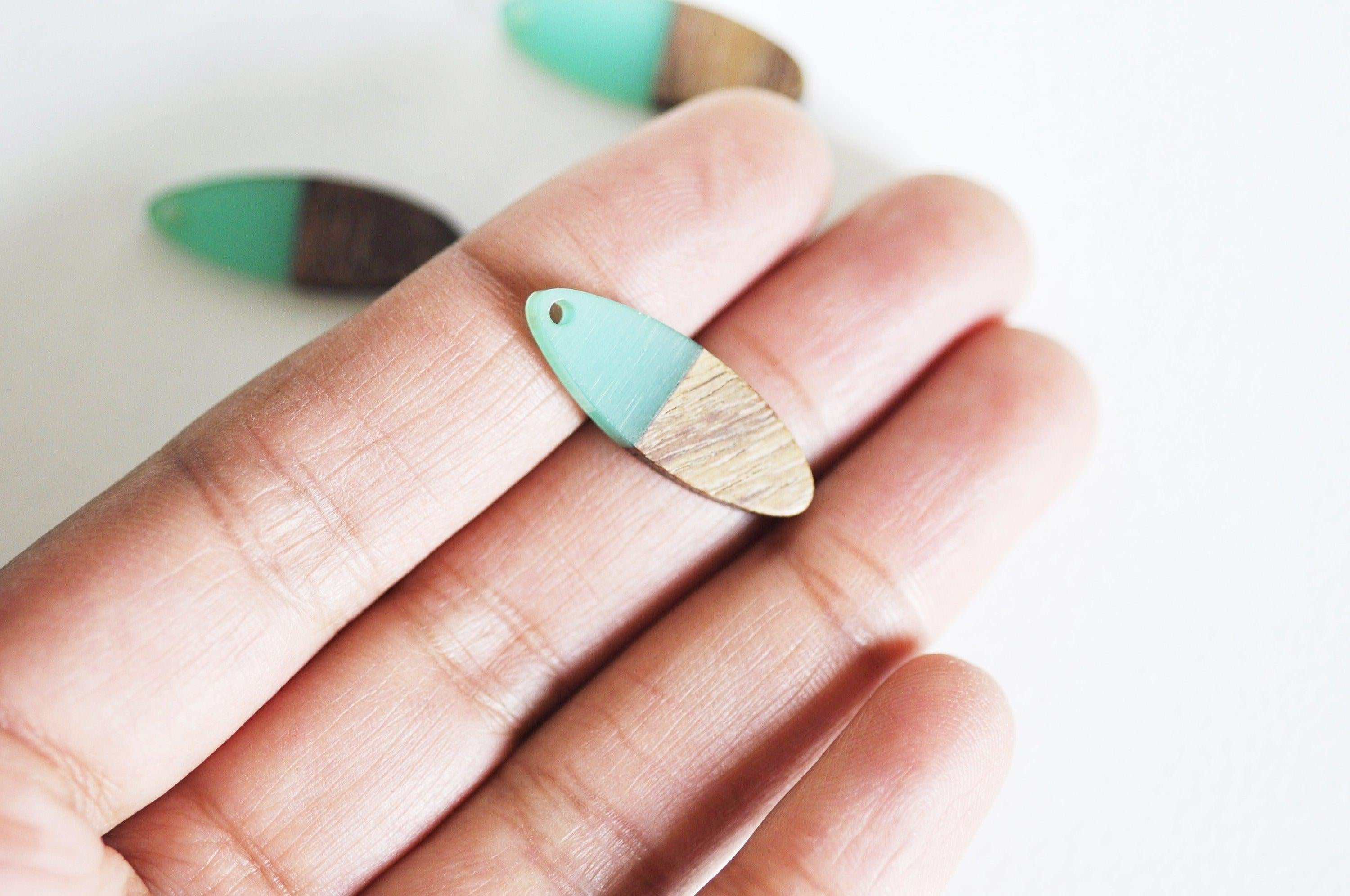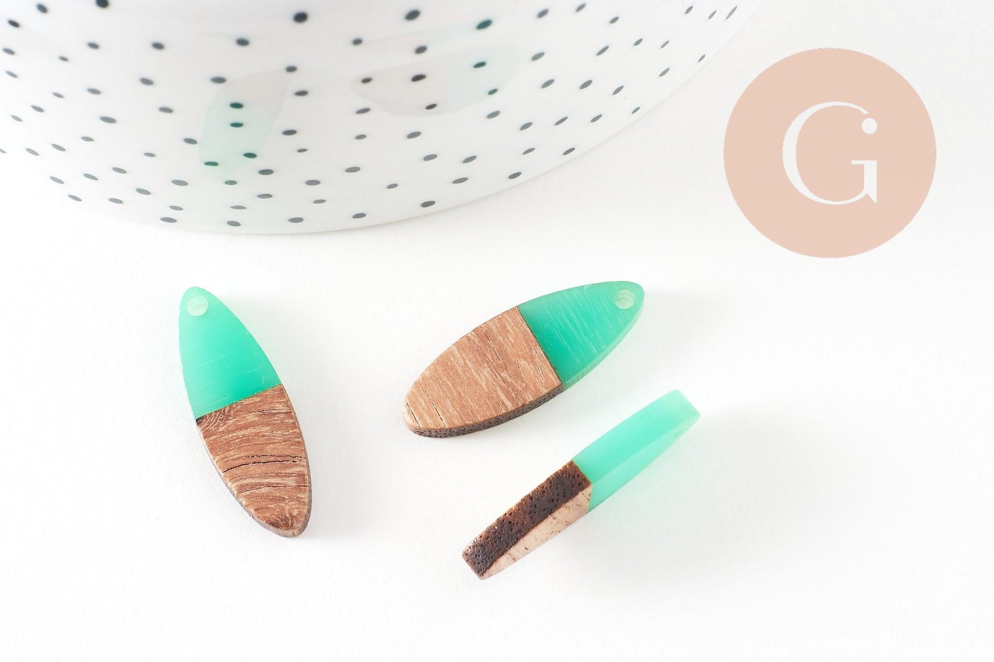 colgante de madera ovalada resina verde, madera natural, cuenta de madera, cuenta geométrica, cuenta ovalada, creación de joyería de madera, 28 mm, 5x G7530