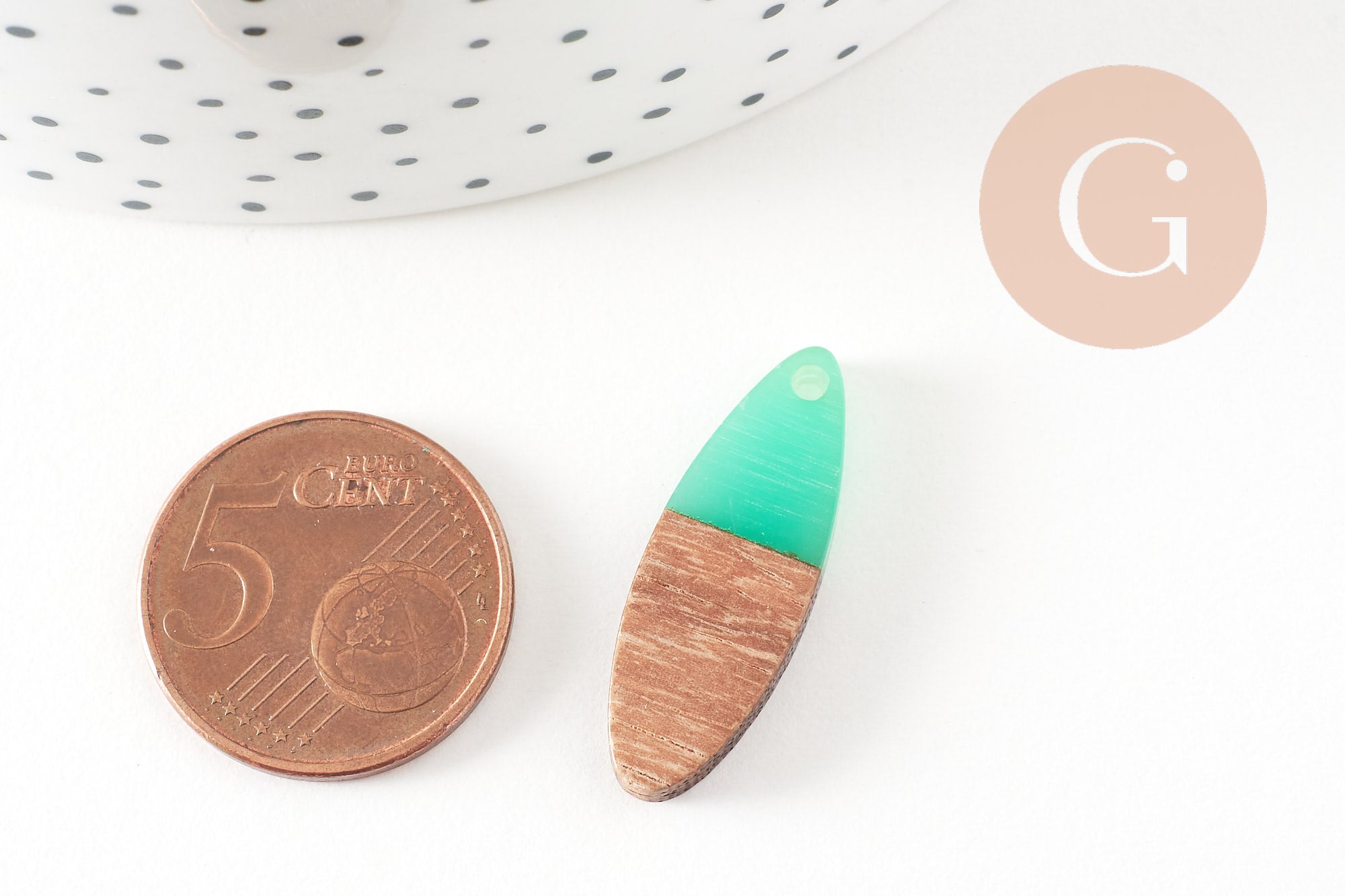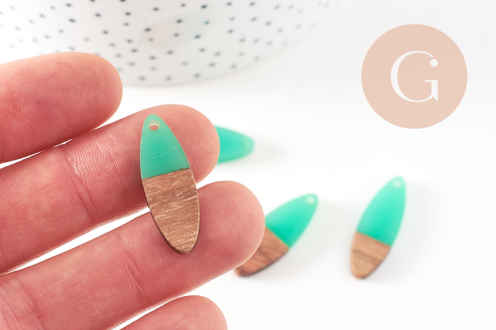 Otros colgantes de madera y resina están disponibles en gingerlily : Sugerencia de presentación, fotografías no contractuales.