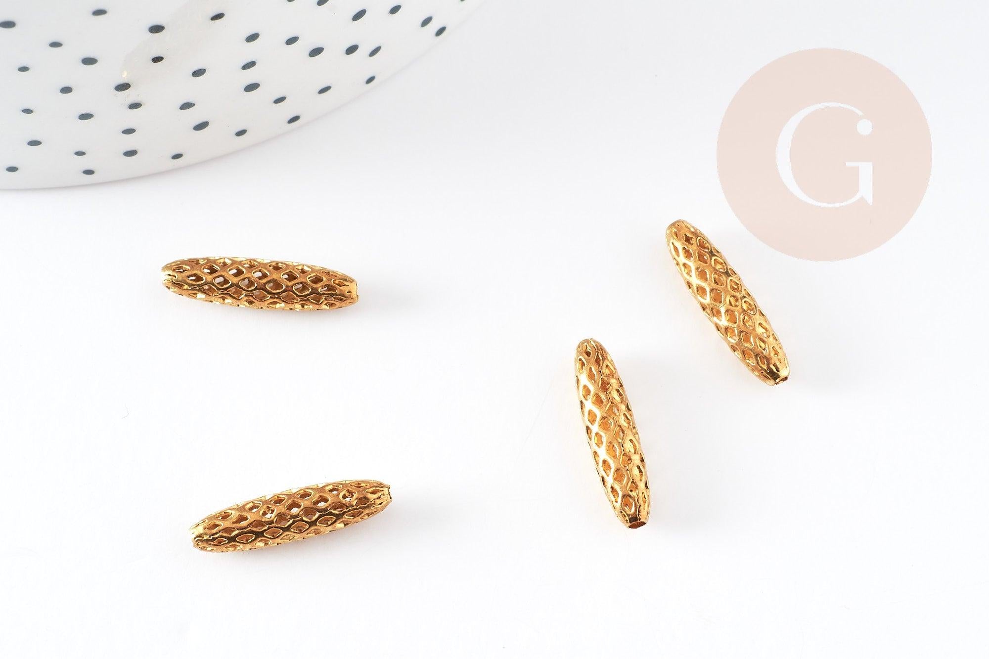 Cuenta ovalada de latón crudo, cuenta de encaje dorado 19 mm x 5 mm, creación de joyas de latón crudo, x5 G4883