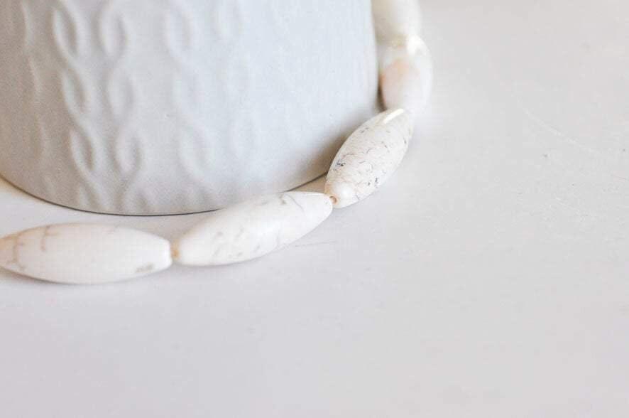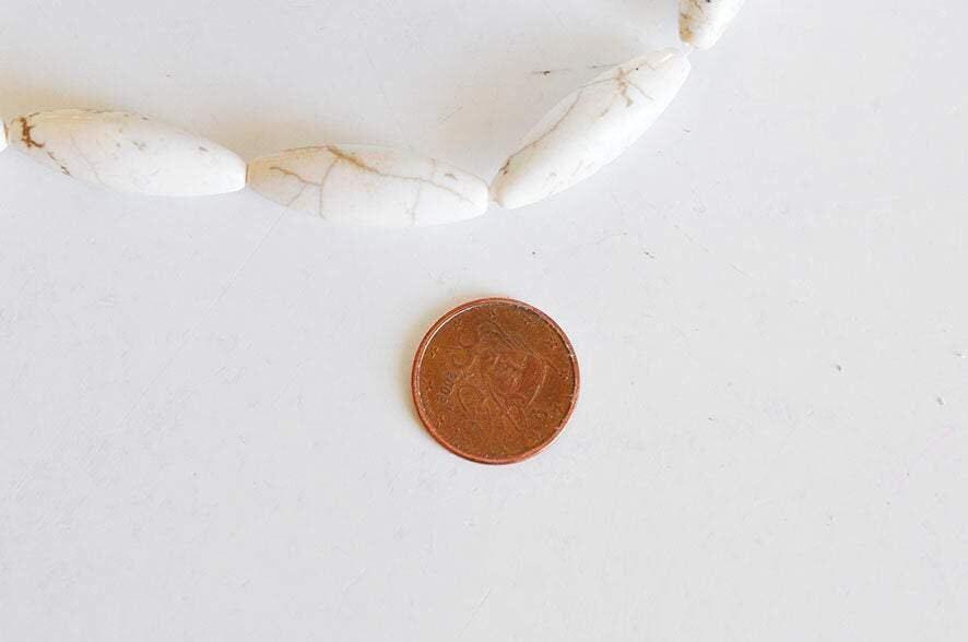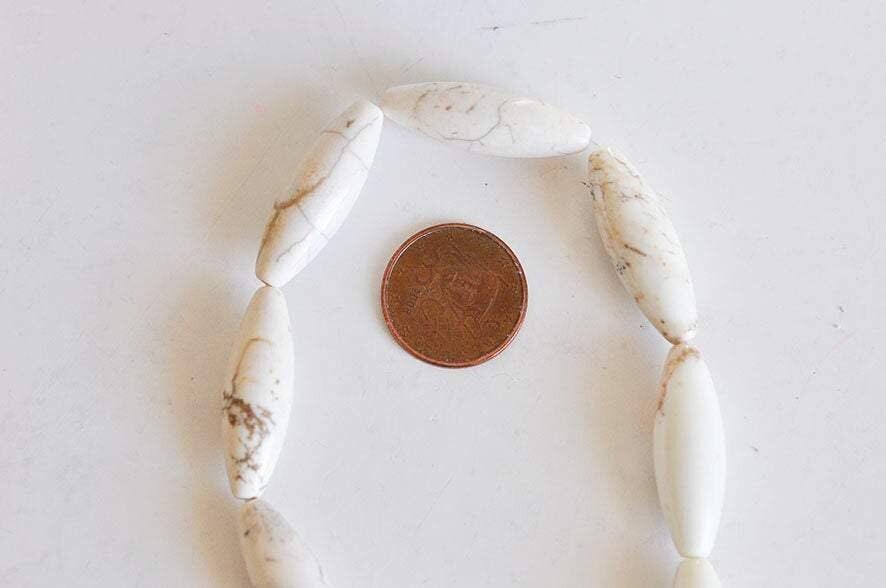 EP Cuenta ovalada turquesa blanca, turquesa natural, cuentas blancas, cuentas de piedra, creación de joyas, x 5, 30mmx10mm-G1319