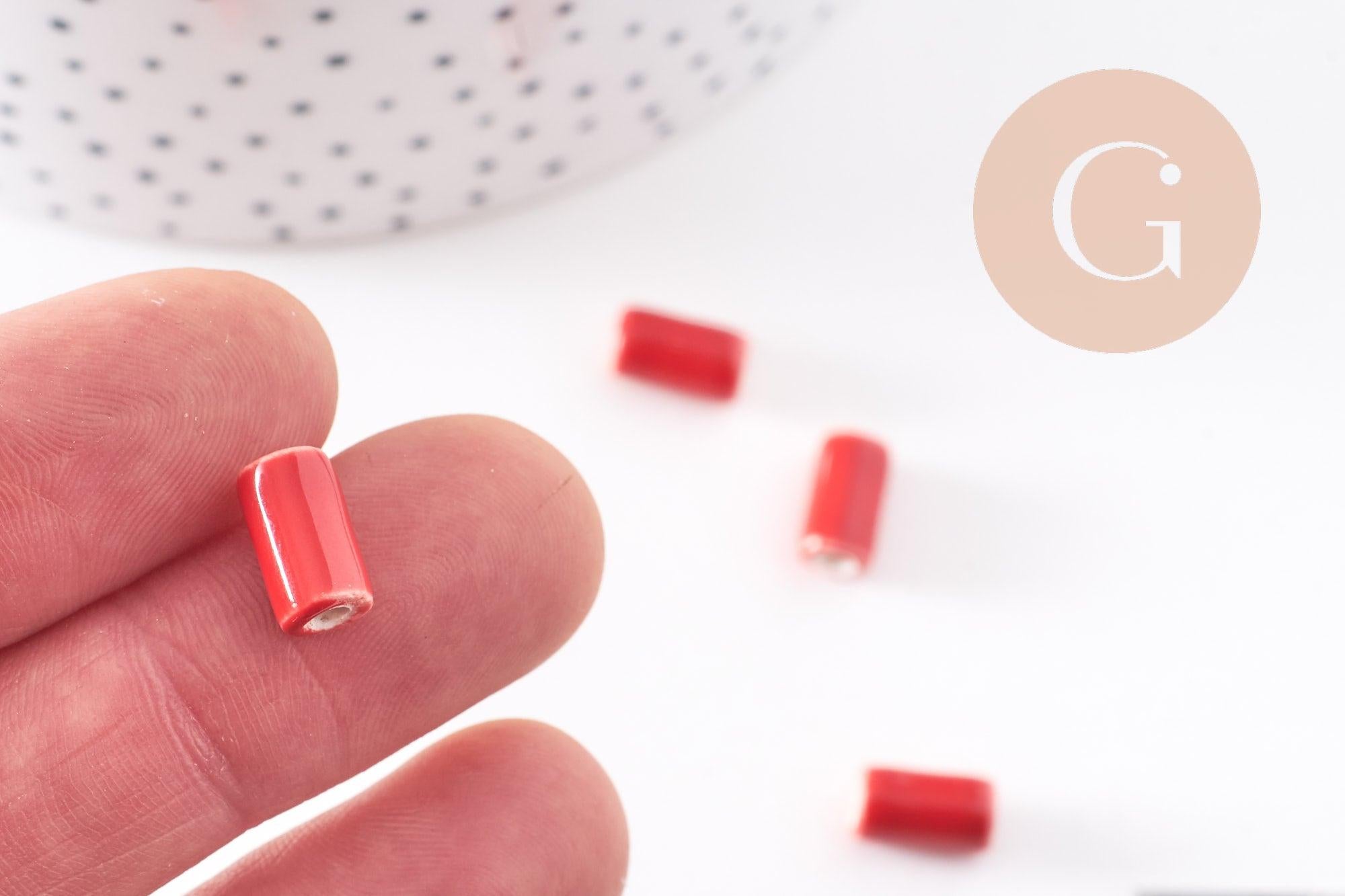 Perla de porcelana roja brillante, suministros creativos, perla de cerámica, porcelana roja, perla de tubo, creación de joyas, juego de 5, 10 mm