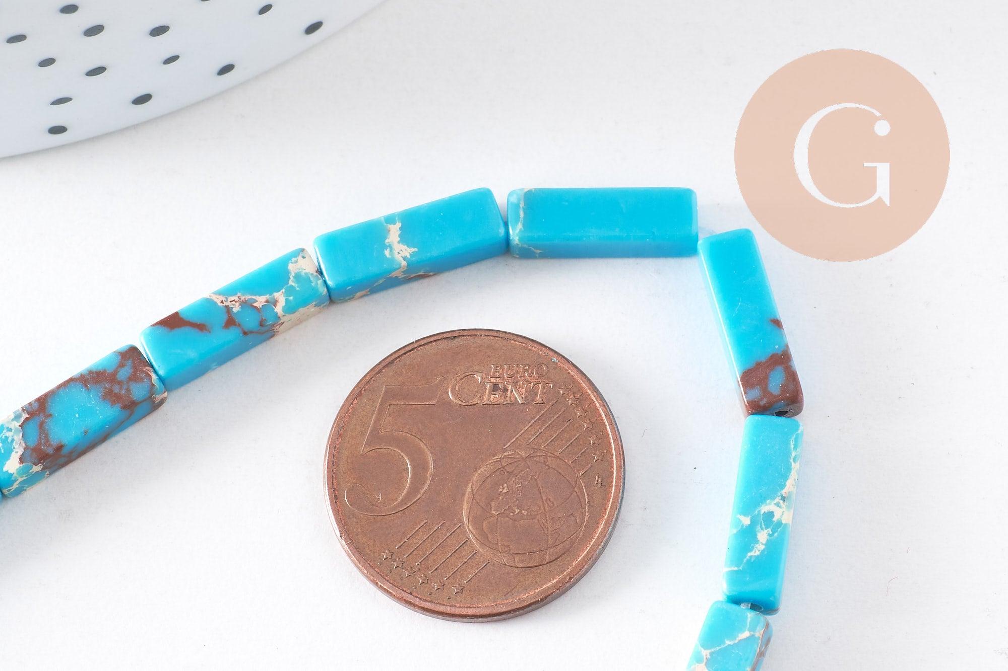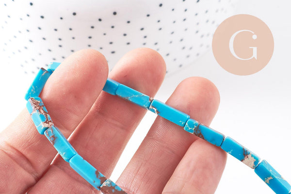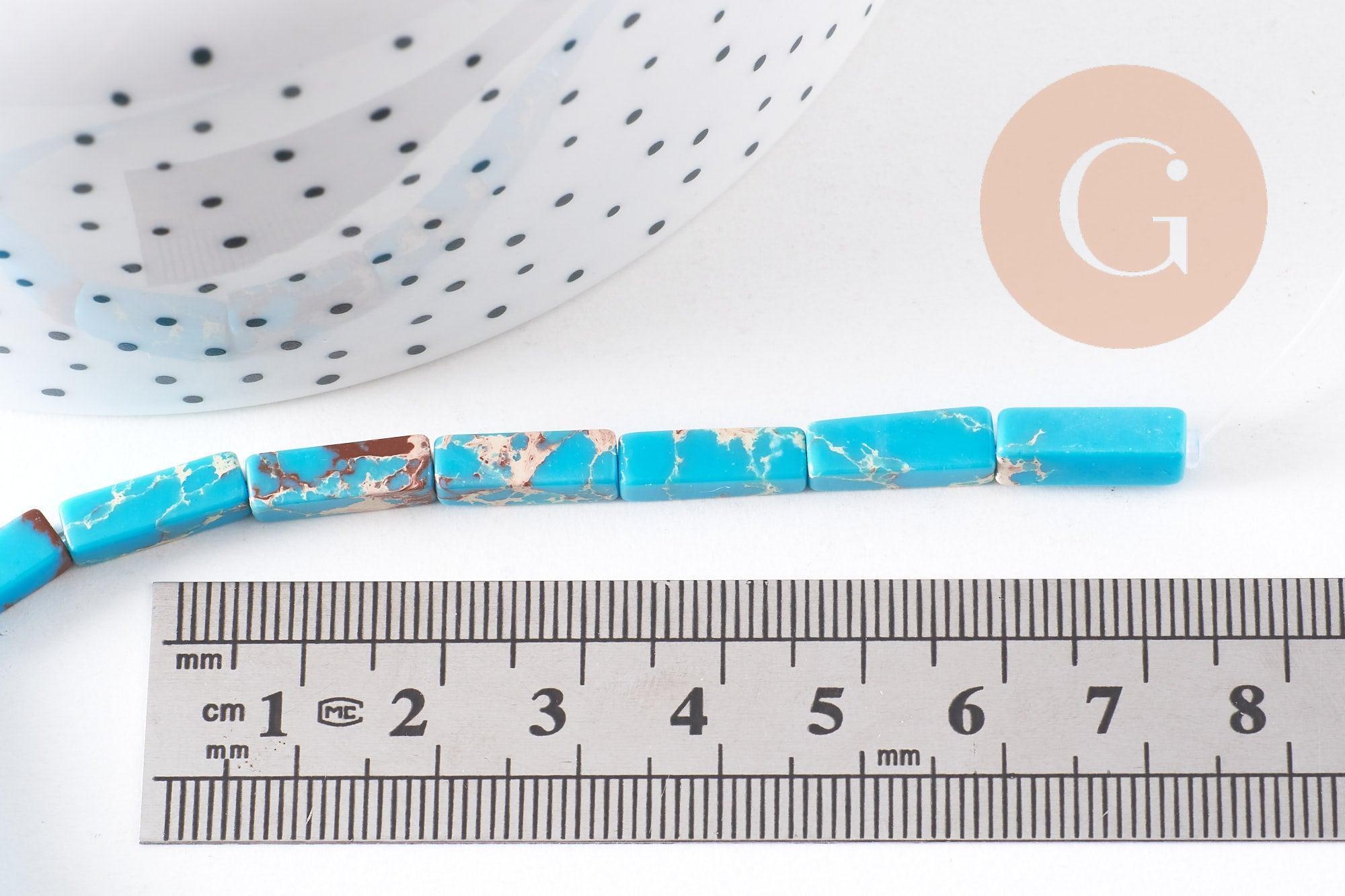 Descubra estas cuentas rectangulares de regalita teñidas de azul turquesa