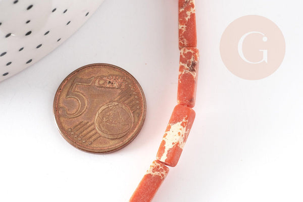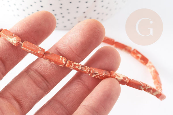 Perla de regalita naranja, suministros creativos, perla rectangular, regalita, piedra natural, perlas de jaspe, perlas de piedra, hilo de 40 cm, 12 mm
