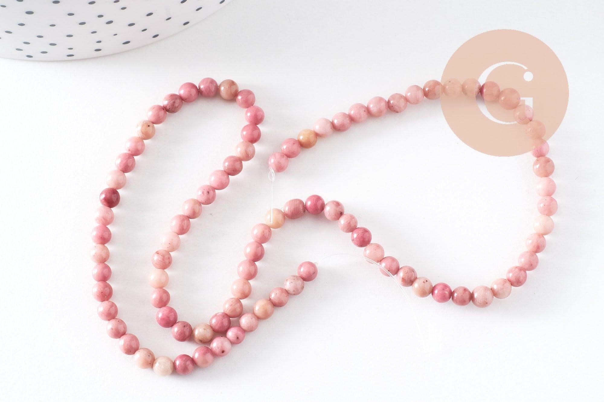 Perla redonda de rodonita rosa natural de 4 mm, perla de piedra natural, tira de 35 cm, x1 (G0557)