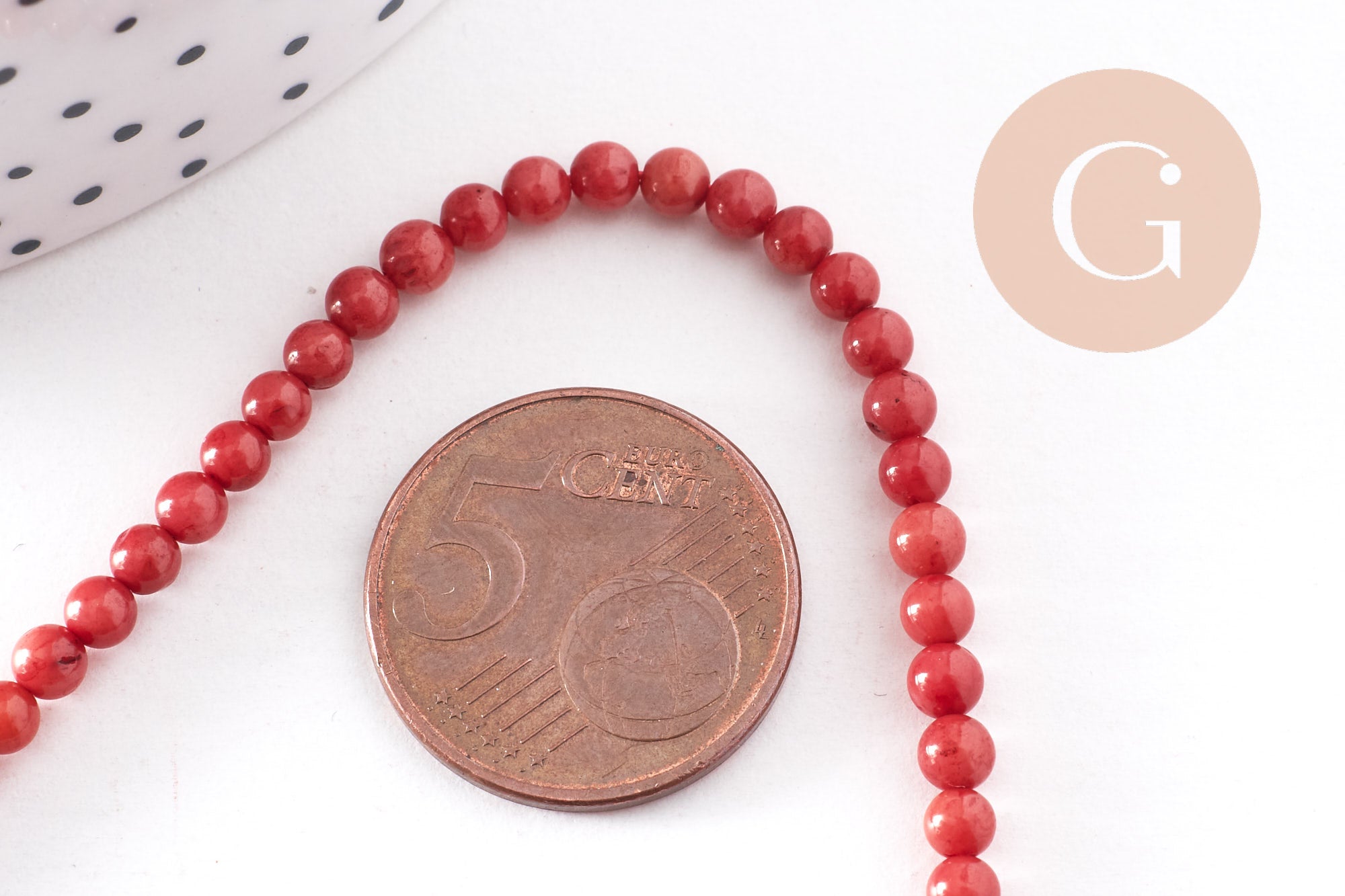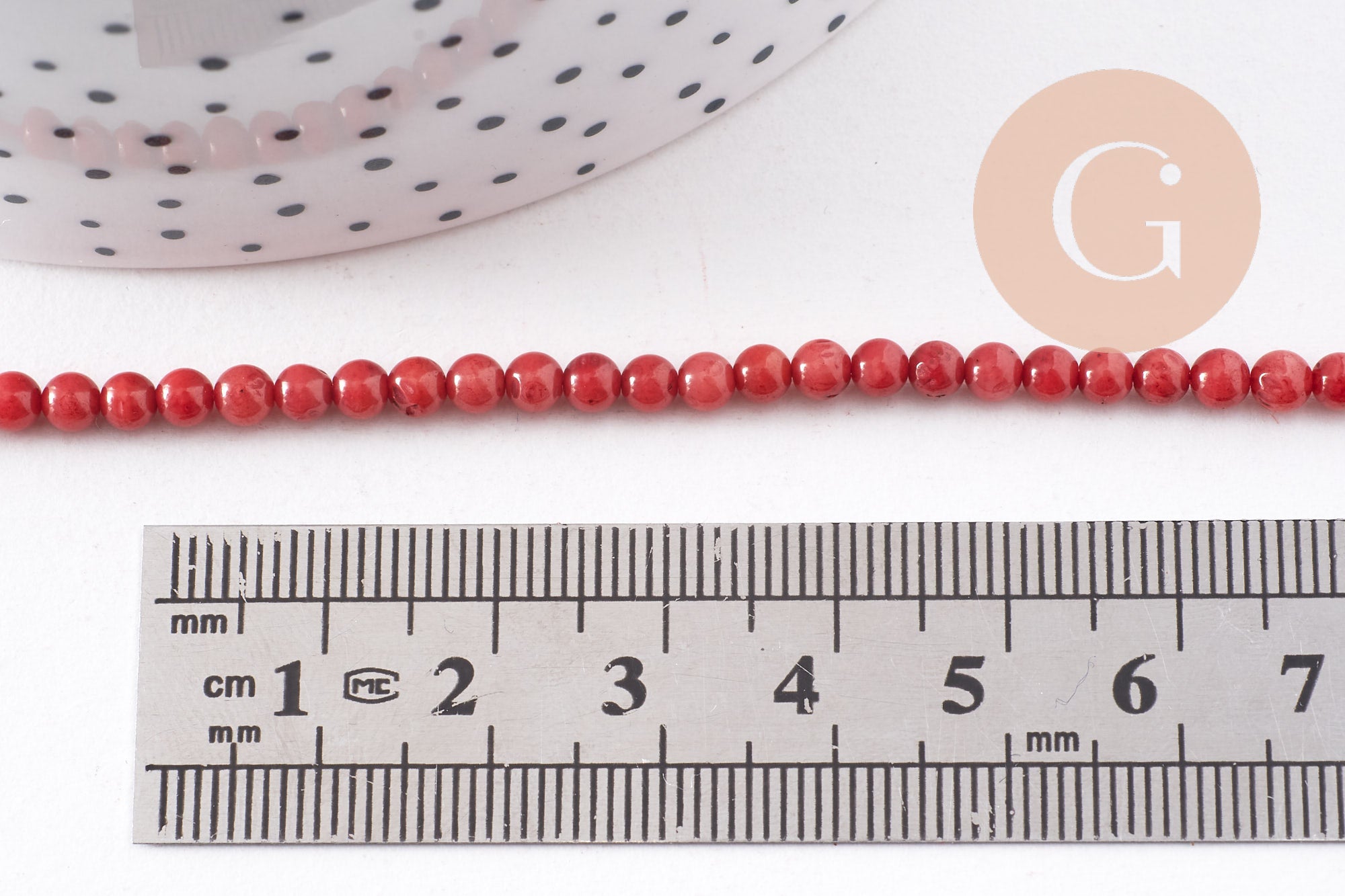 Cuentas redondas teñidas de rojo en imitación coral (bambú marino natural).