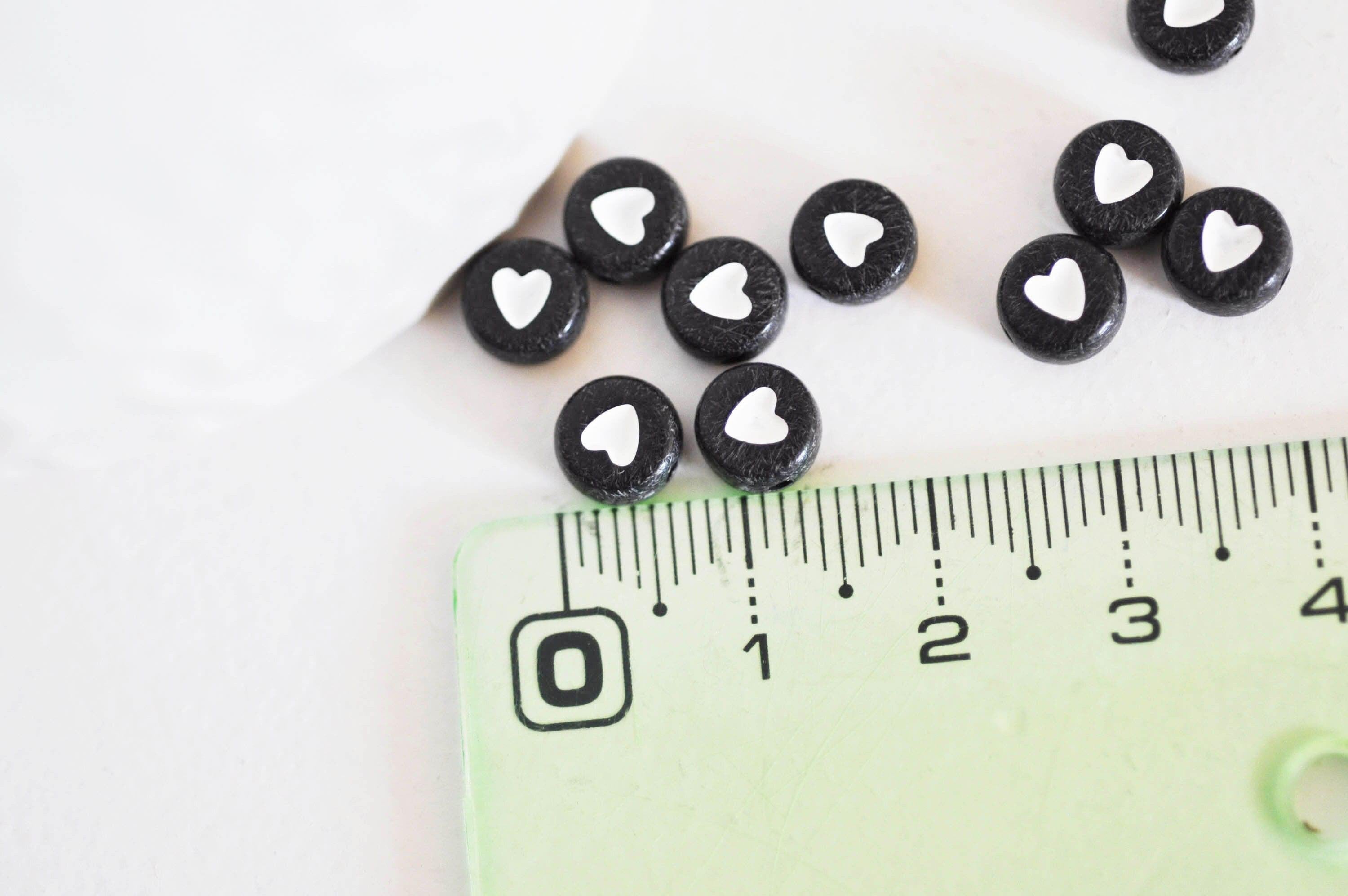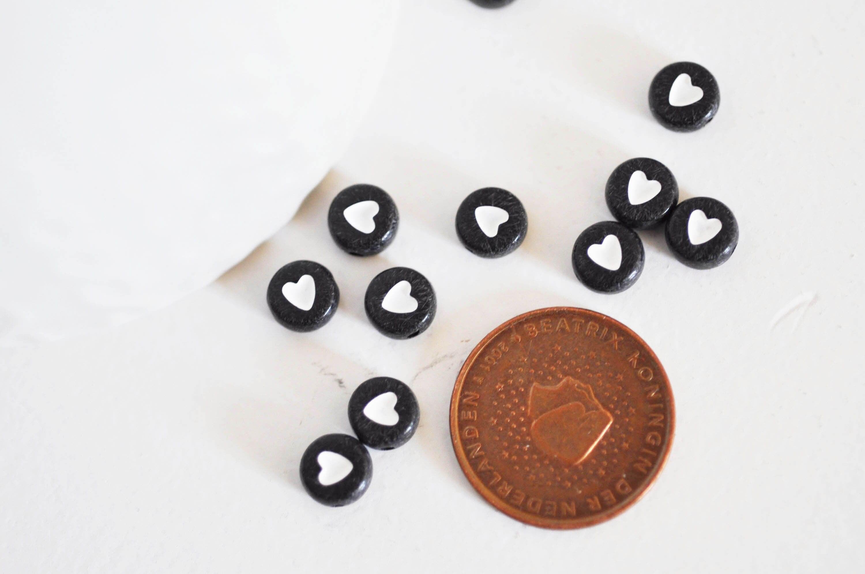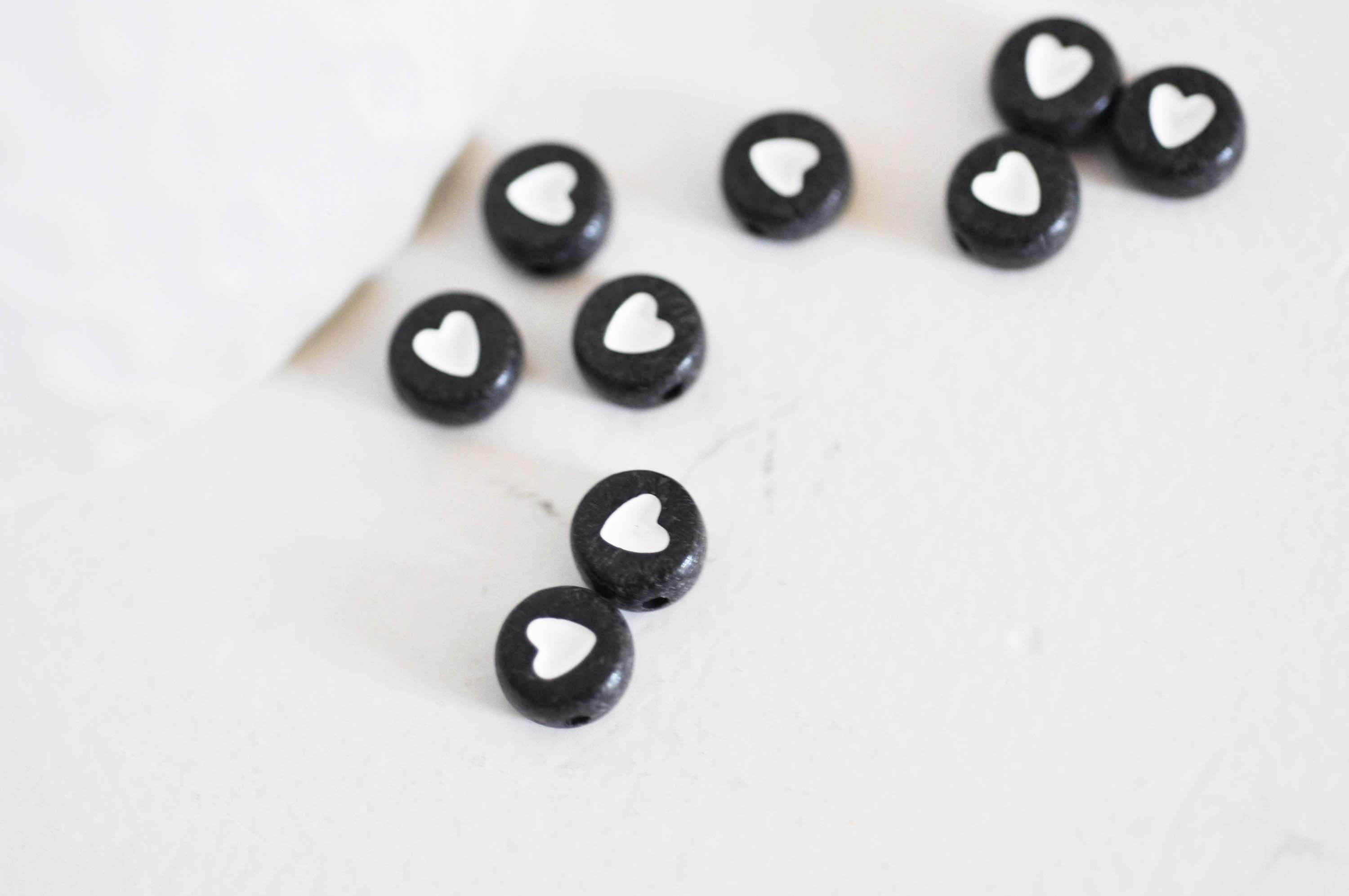 perla redonda corazón blanco plástico negro, perla de plástico, perla de letra redonda, creación de joyas, lote de 10 gramos