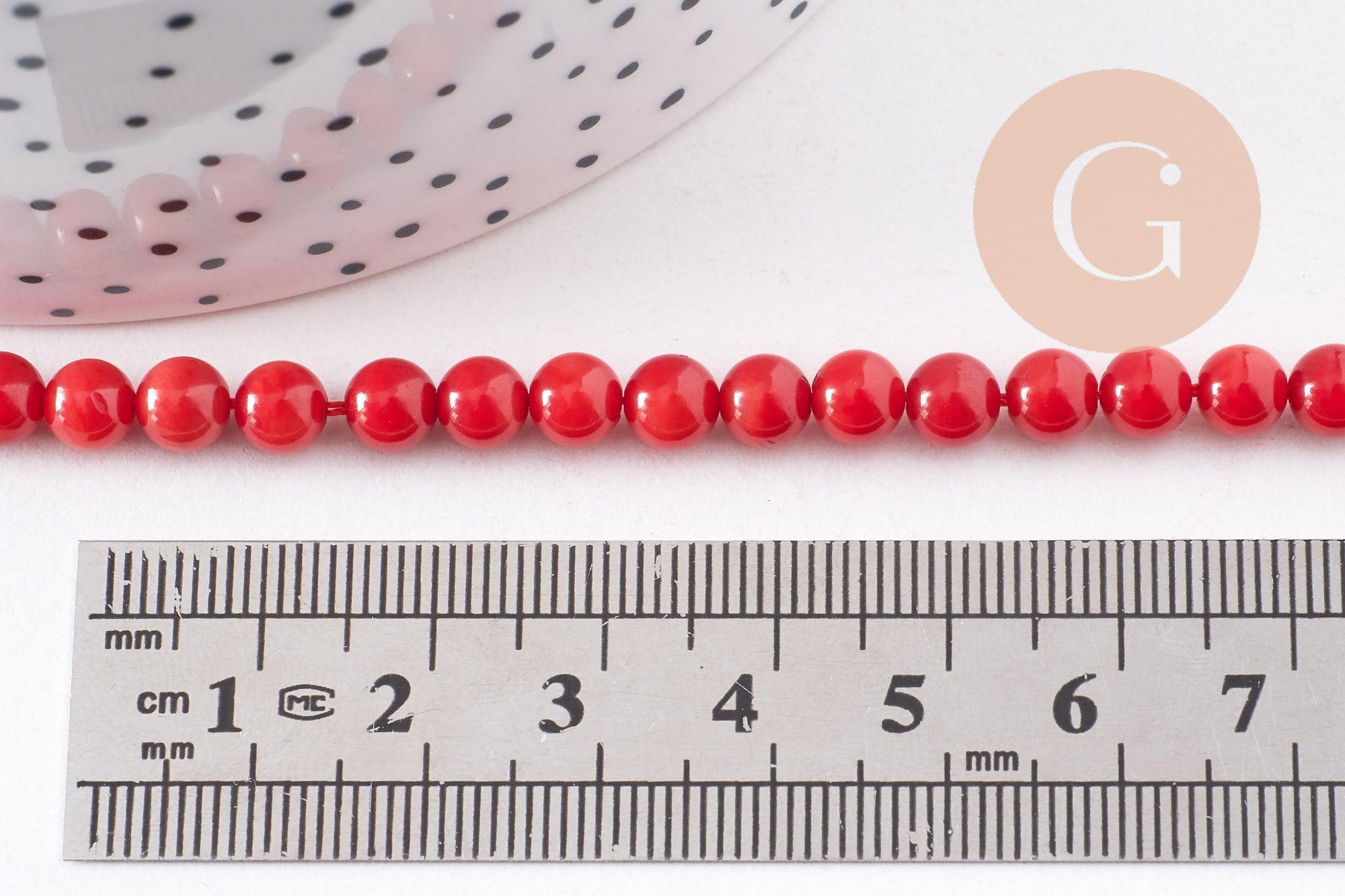 Cuentas de coral rojo redondas, cuentas de coral, fabricación de joyas, coral rojo, coral natural, hilo de aproximadamente 40 cm, 6 mm x1 (G5388)