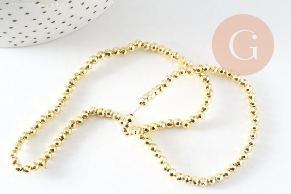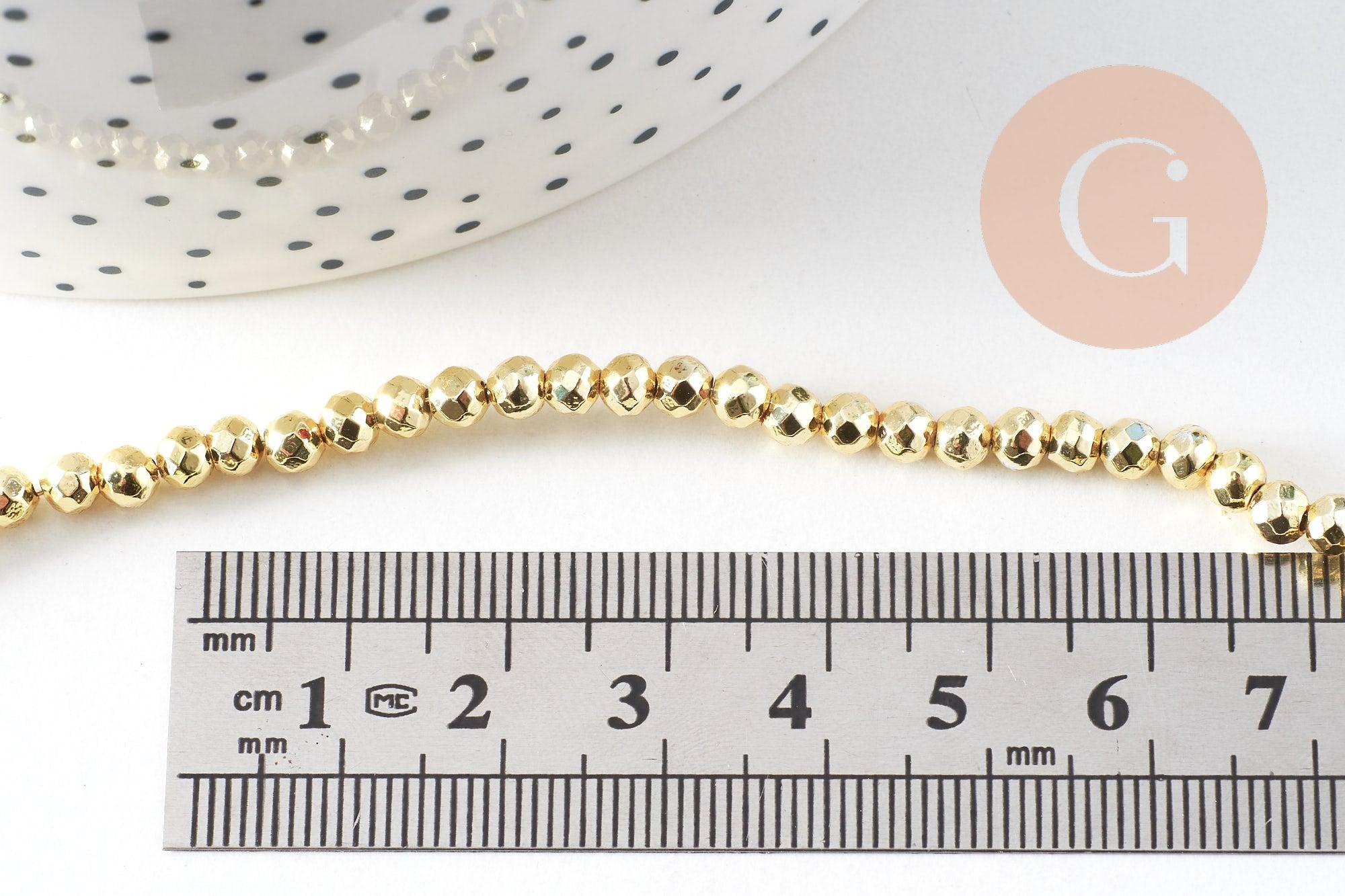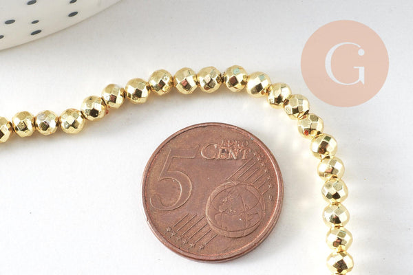 Perla redonda facetada de hematita dorada de 4 mm, perla de piedra de hematita sintética, tira de 39 cm, x1 (G6217)