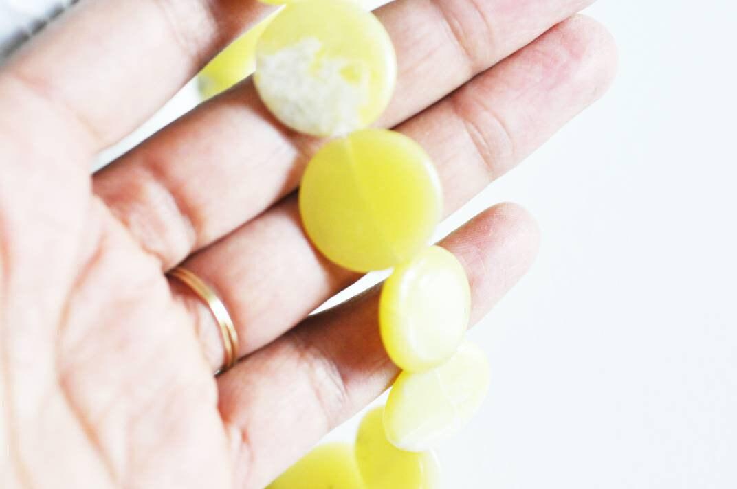 Perla redonda de hoja de jade amarillo, piedra preciosa, piedra natural, jade amarillo natural, perla de piedra, piedra laminada, joyería de piedra, 22 mm, 5 Cuentas de jade amarillo natural para crear tus pendientes, collares y pulseras. Las perlas miden:...