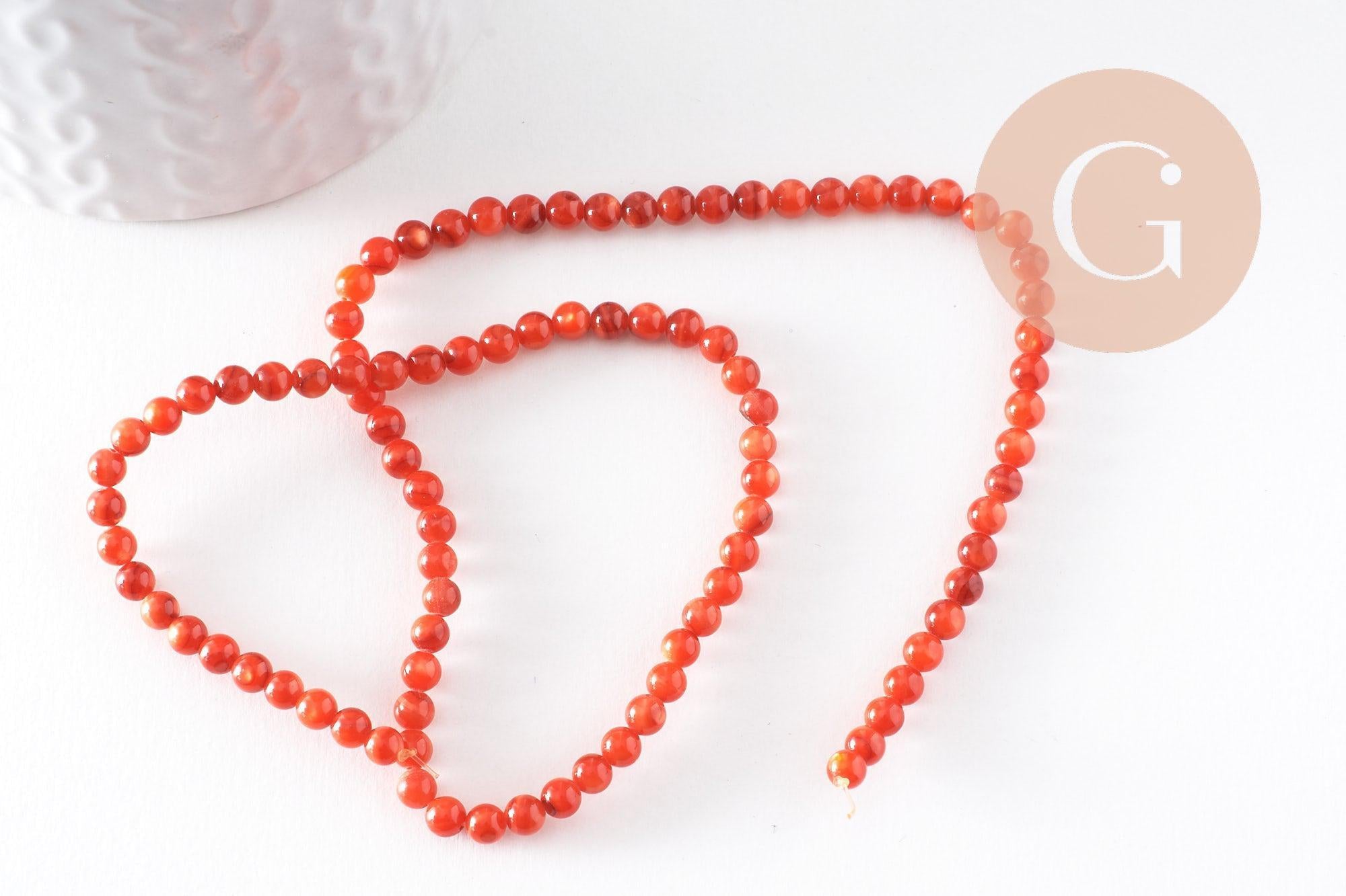 Cuenta redonda de nácar natural teñida de rojo 4 mm, cuentas de concha, x1 tira de 37,5 cm (G9974)