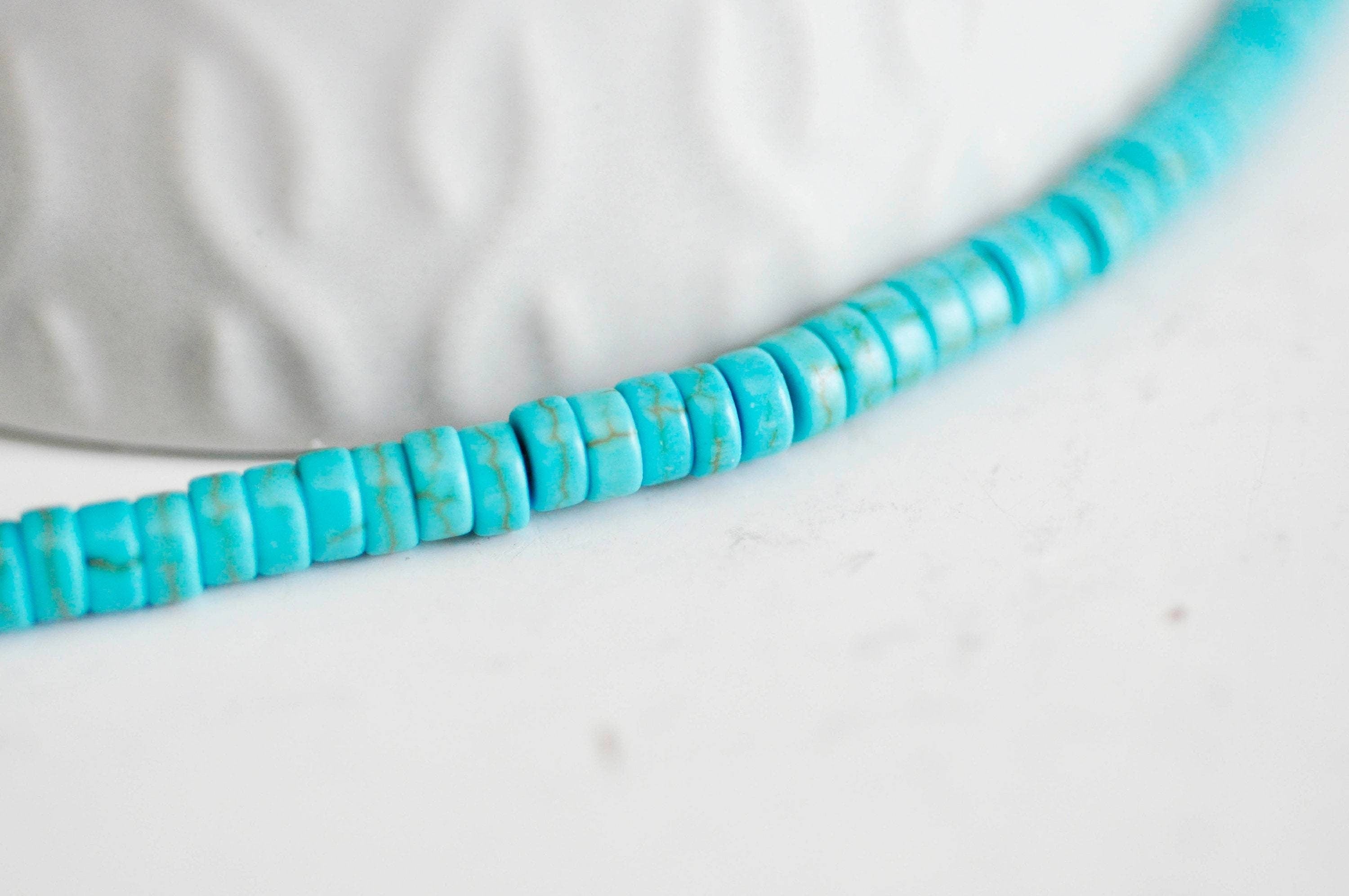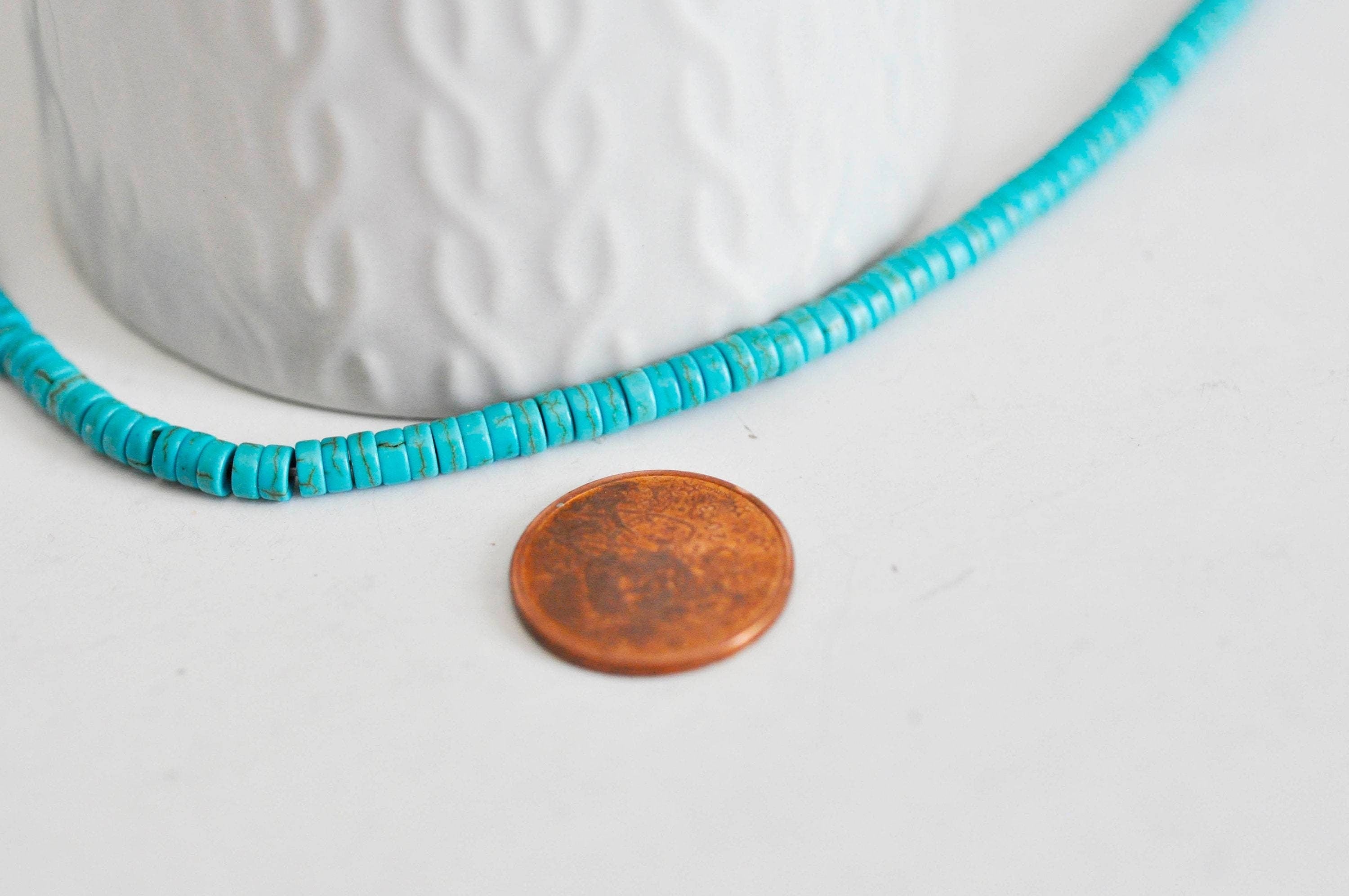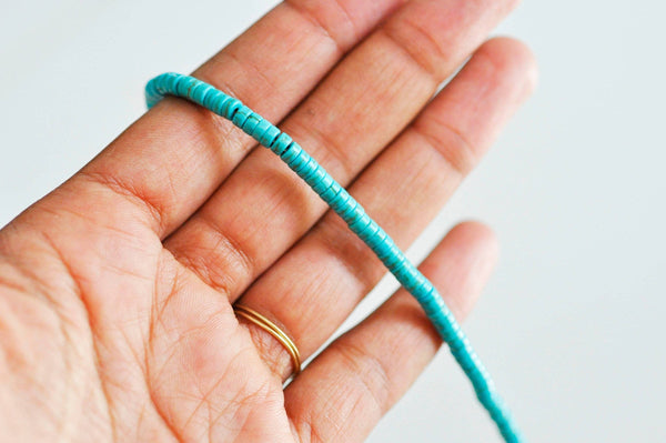 ¡Un imprescindible para todas tus creaciones bohemias! Estas cuentas heishi redondas de howlita sintética turquesa aportan un toque de frescura a tus joyas DIY. Su forma fina y regular permite diseños delicados y contemporáneos.