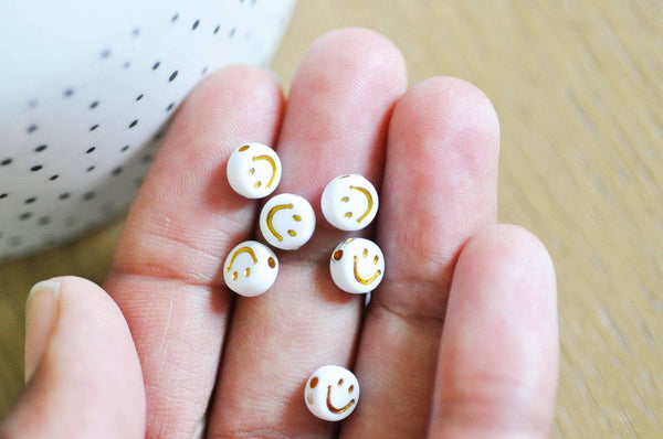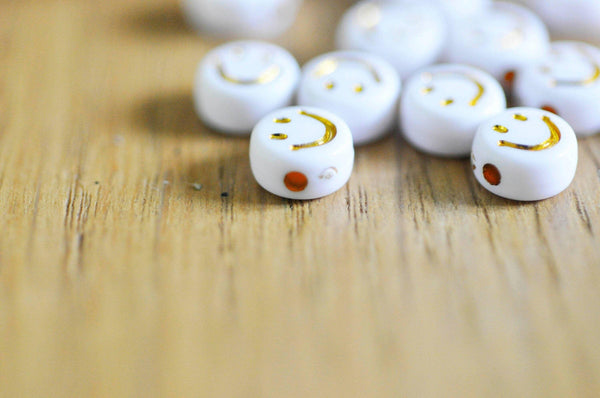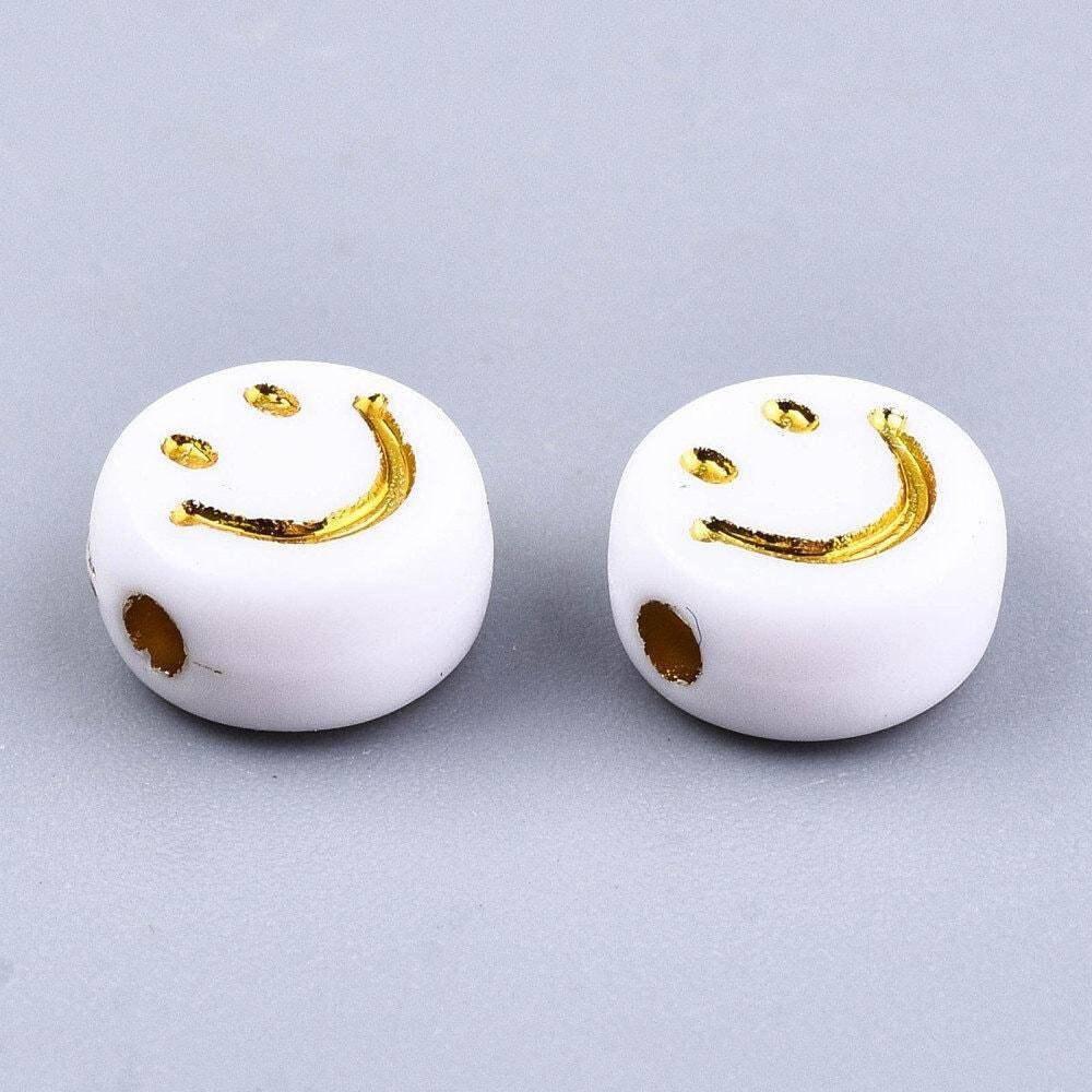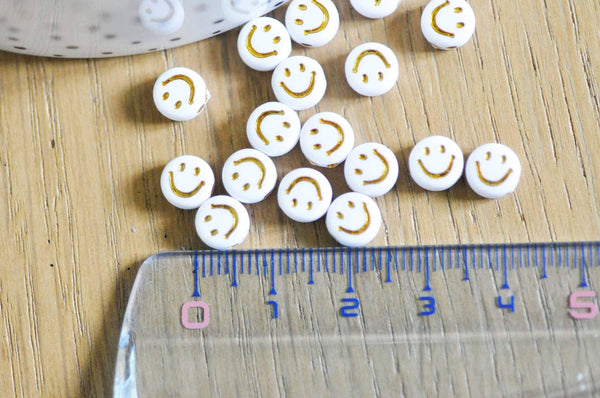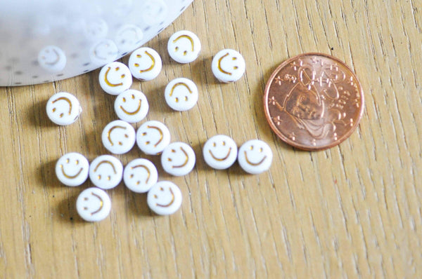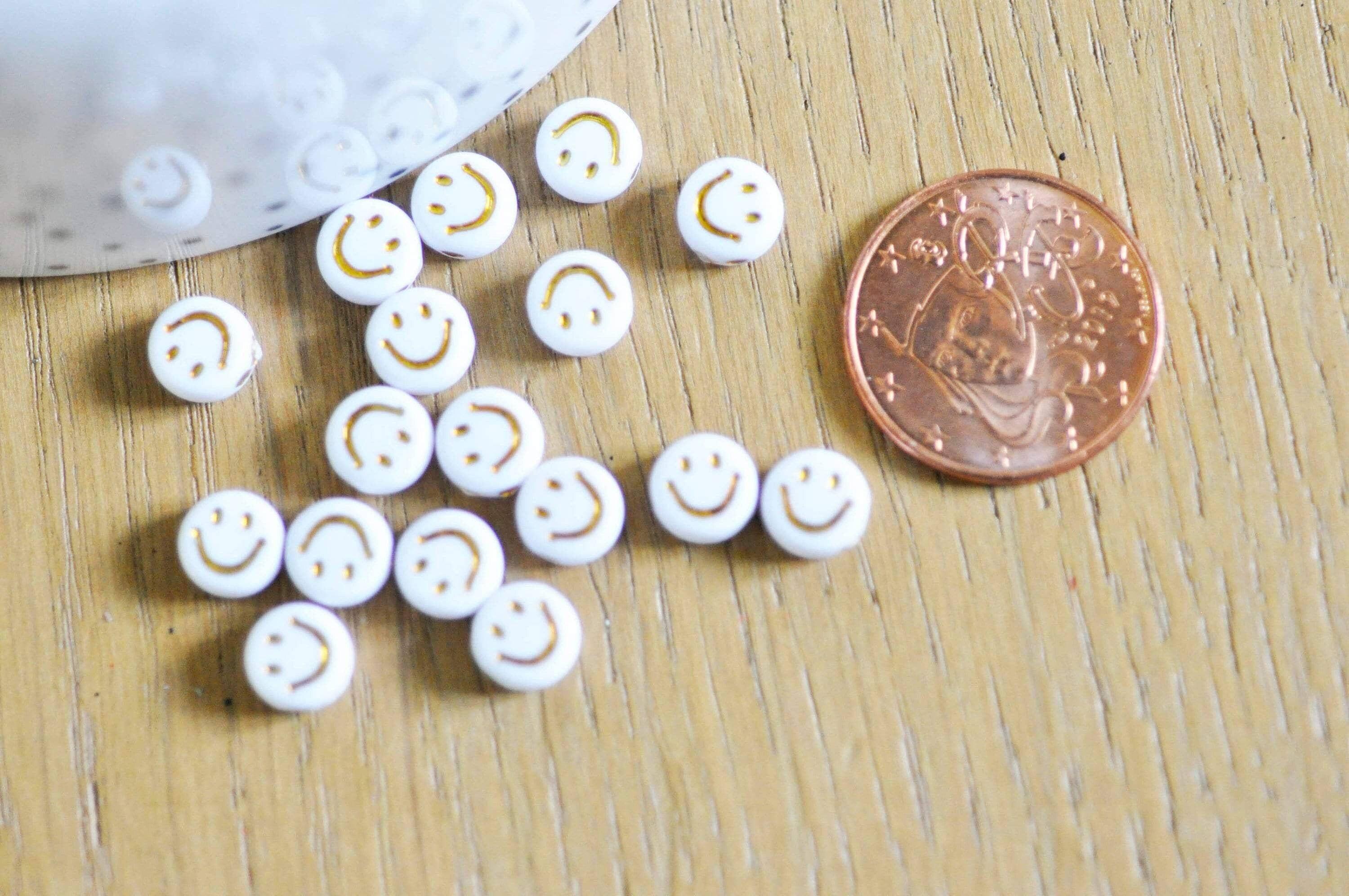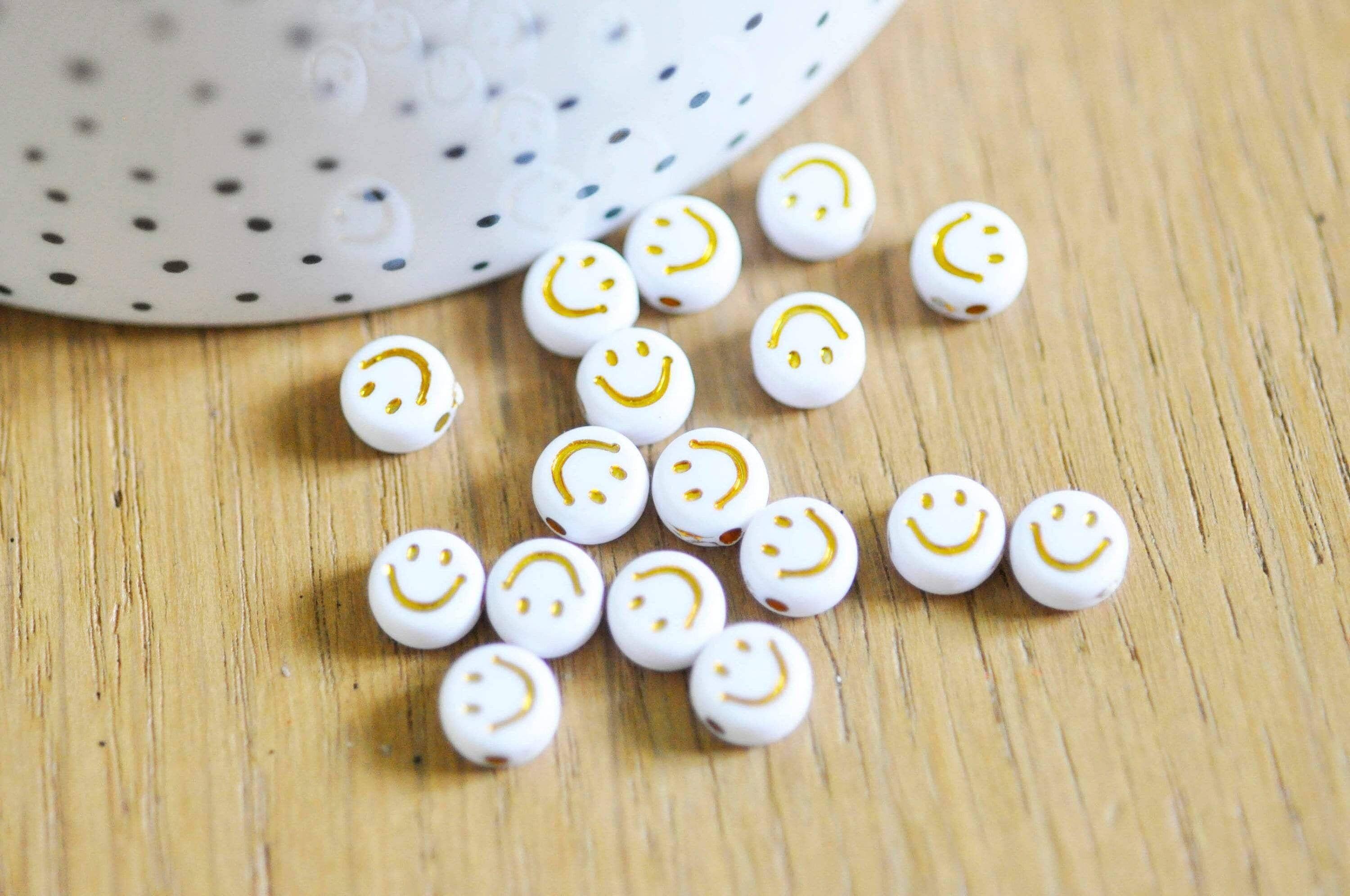 perla de plástico blanca sonriente dorada redonda, perla de plástico, perla de letra redonda, creación de joyas, perla de corazón, lote de 10 gramos