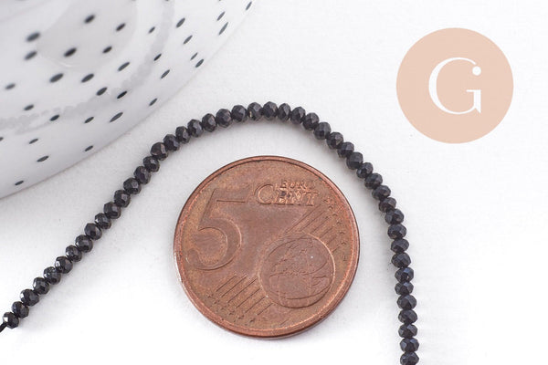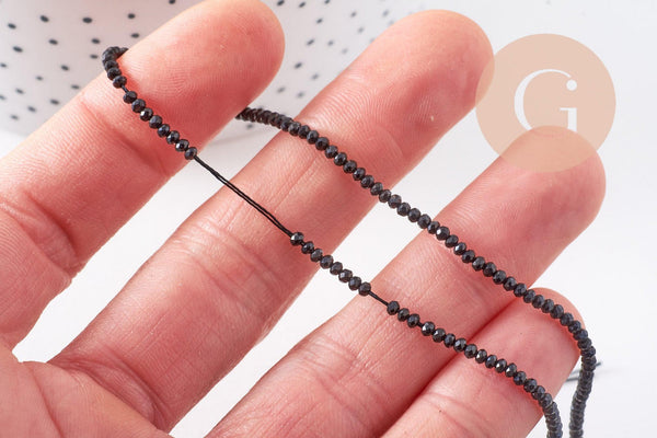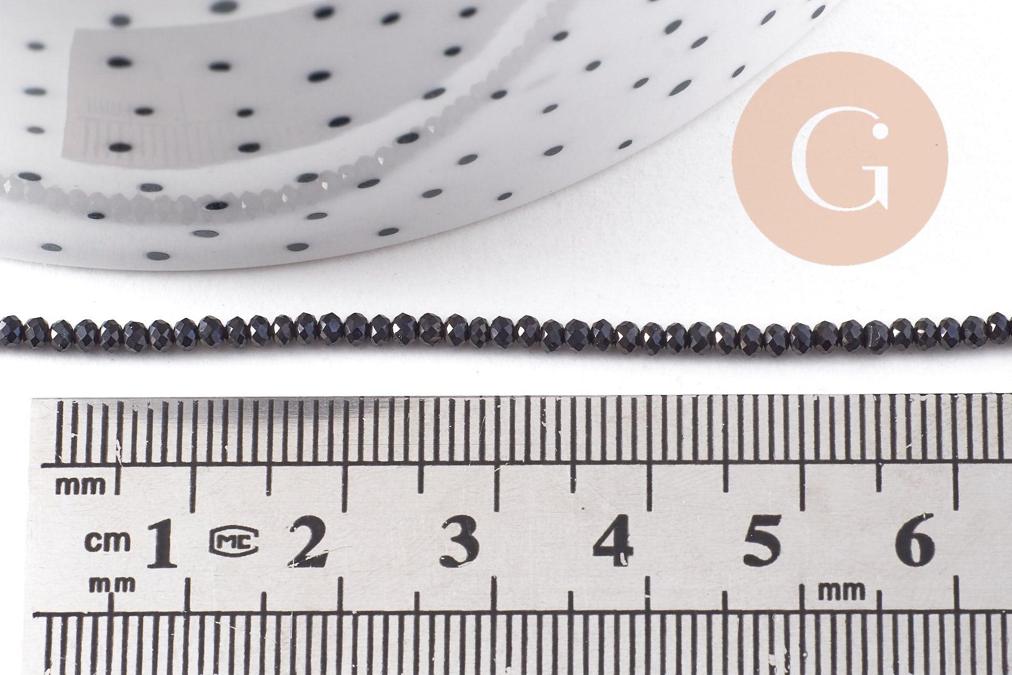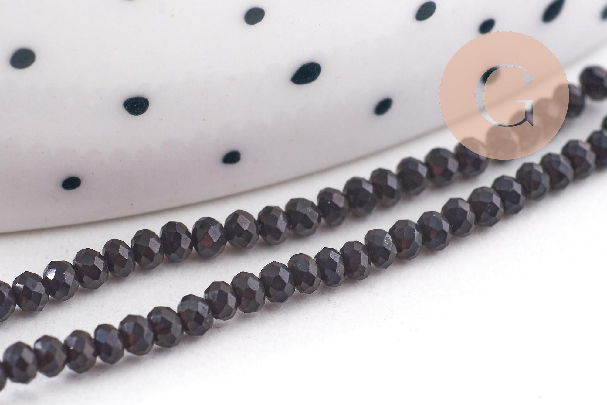 Perle ronde verre facettée irisée gris anthracite 2mm, fourniture création de bijoux DIY, le fil de 37cm, x1 (G7492)