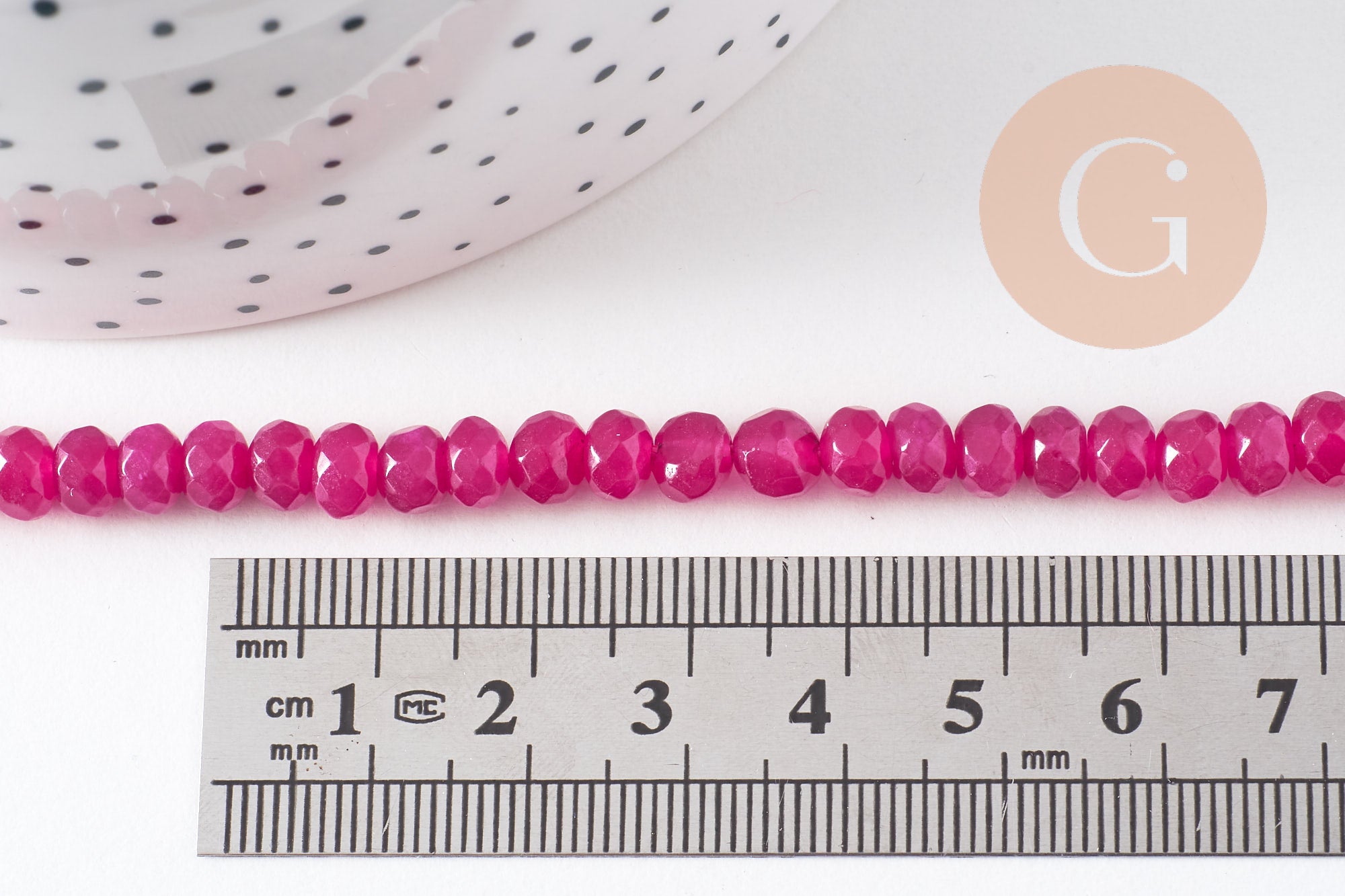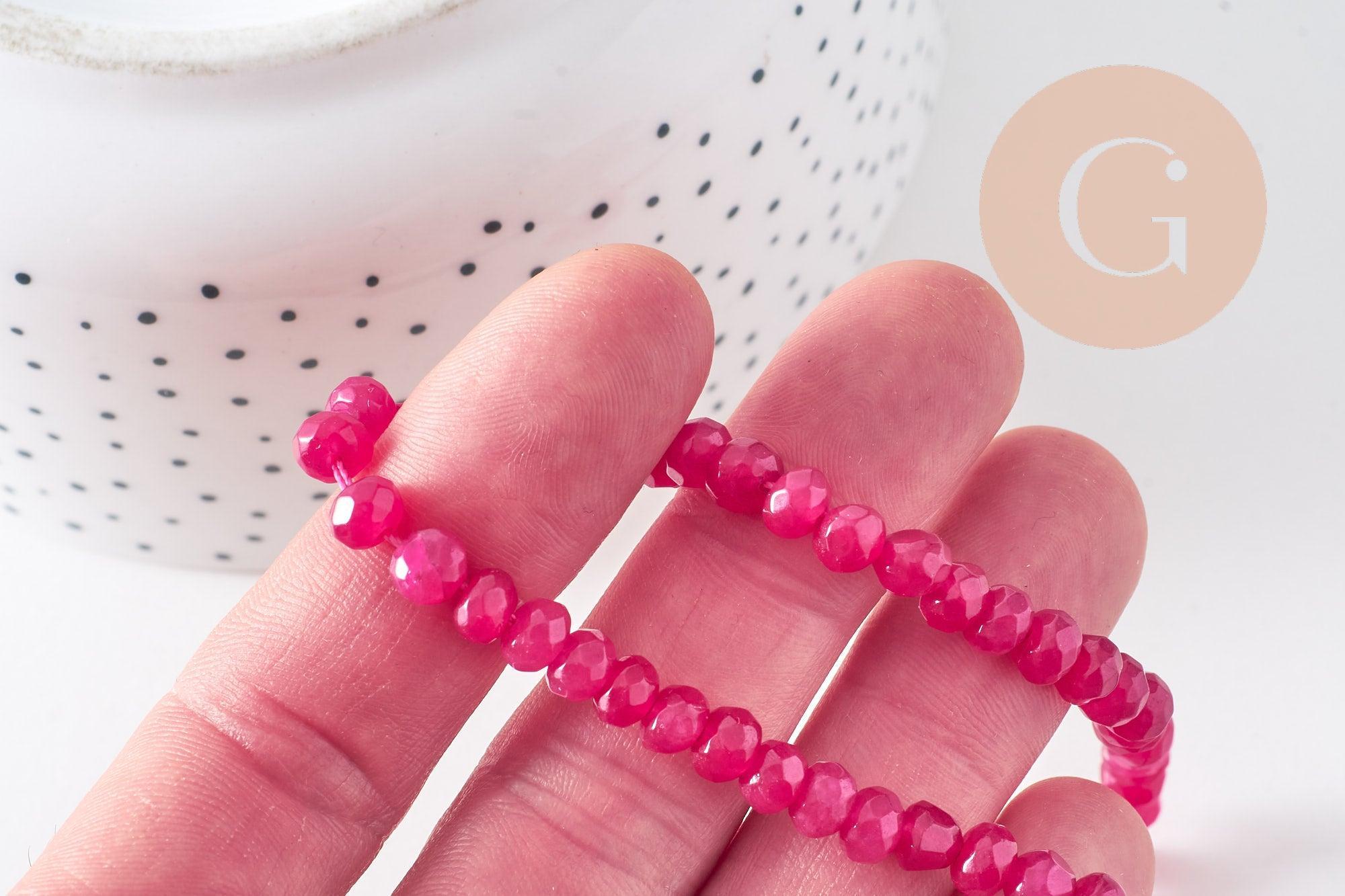 Añade un toque de brillo y feminidad a tus creaciones con estas cuentas rondelle facetadas de jade natural rosa fucsia . Su sutil brillo y su intenso color las hacen ideales para crear joyas expresivas y elegantes.