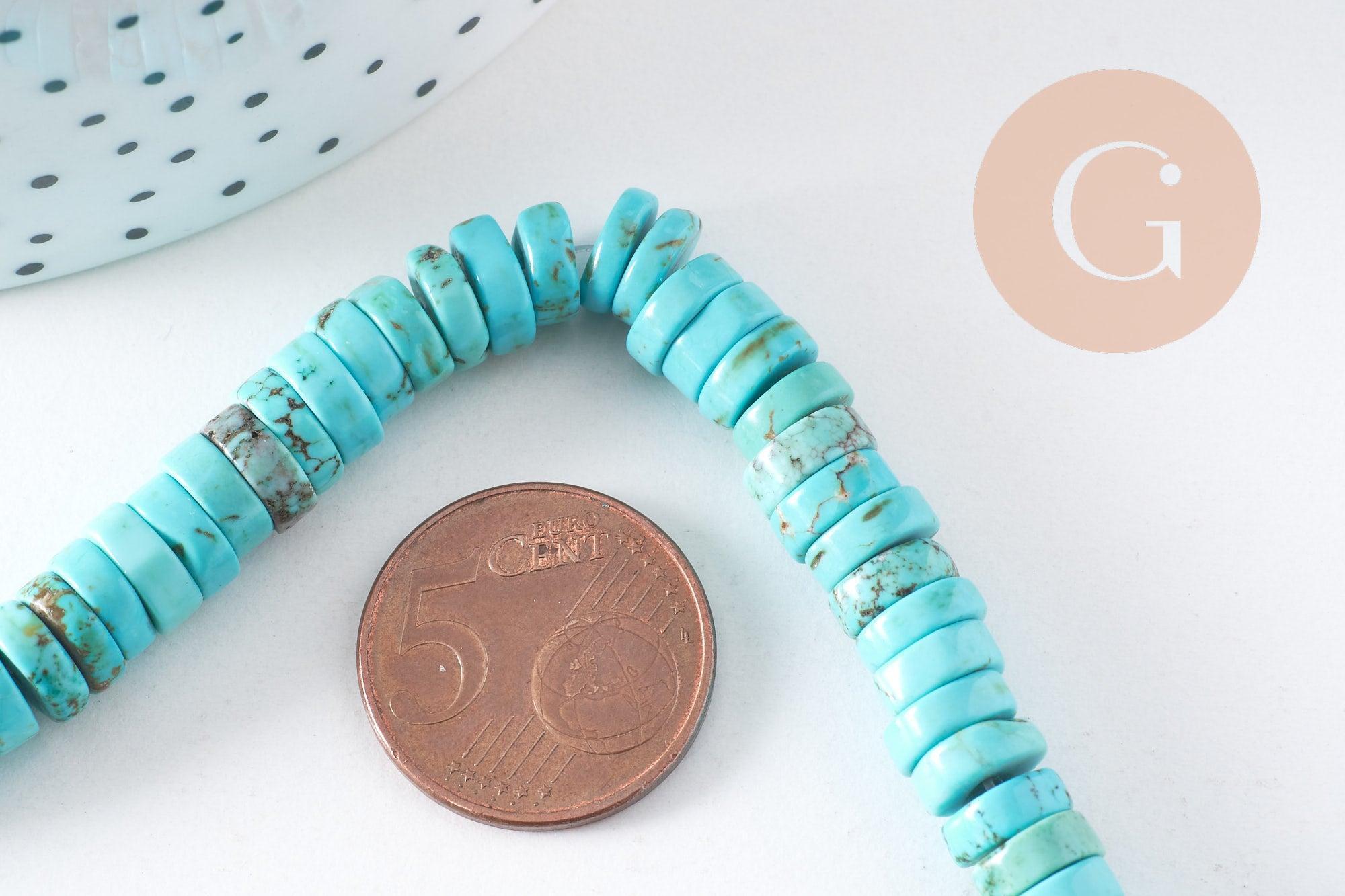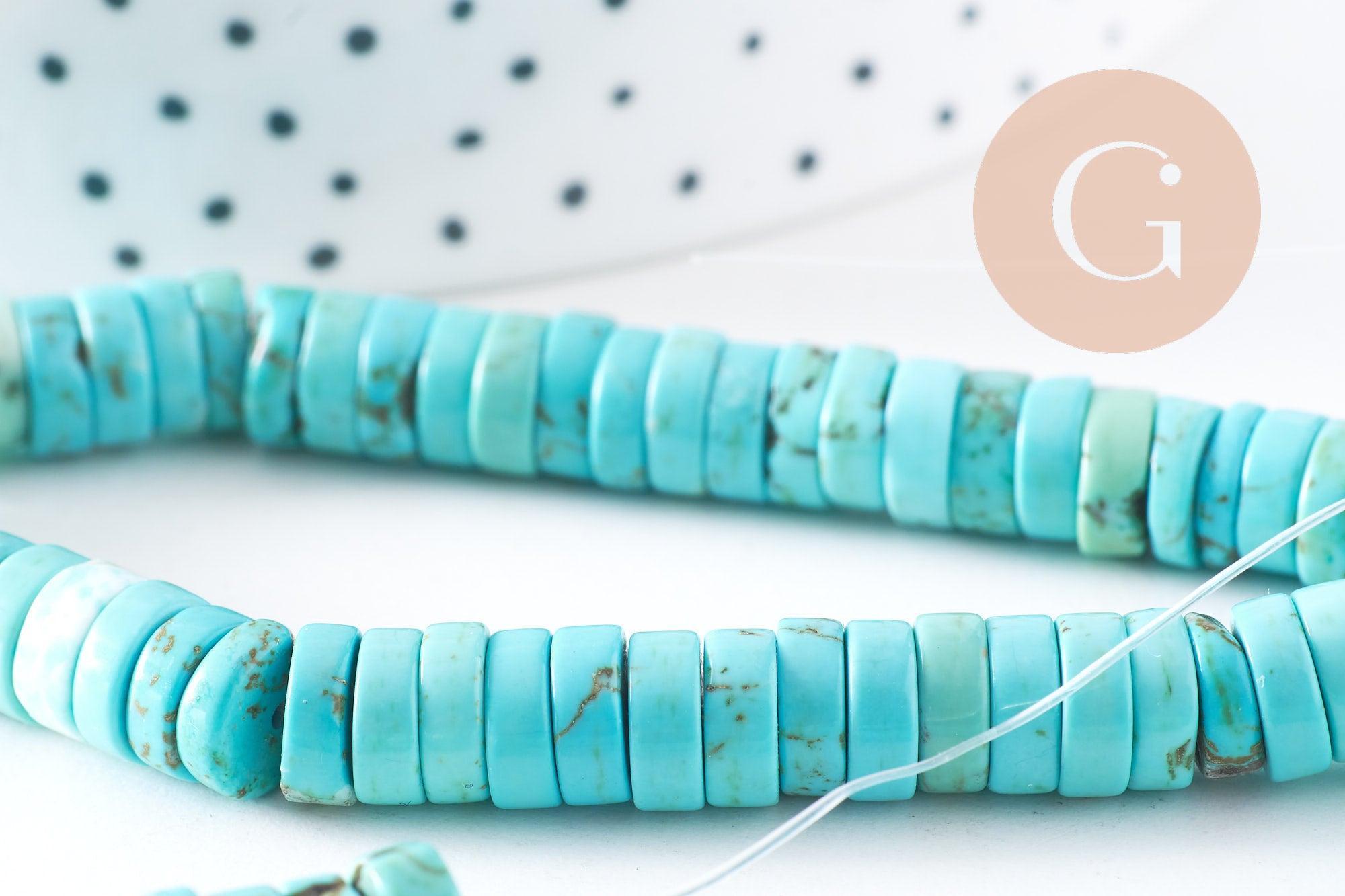 cuenta rondelle turquesa natural, cuentas de piedra, fabricación de joyas, turquesa natural, 8 mm, hilo de 100 cuentas,