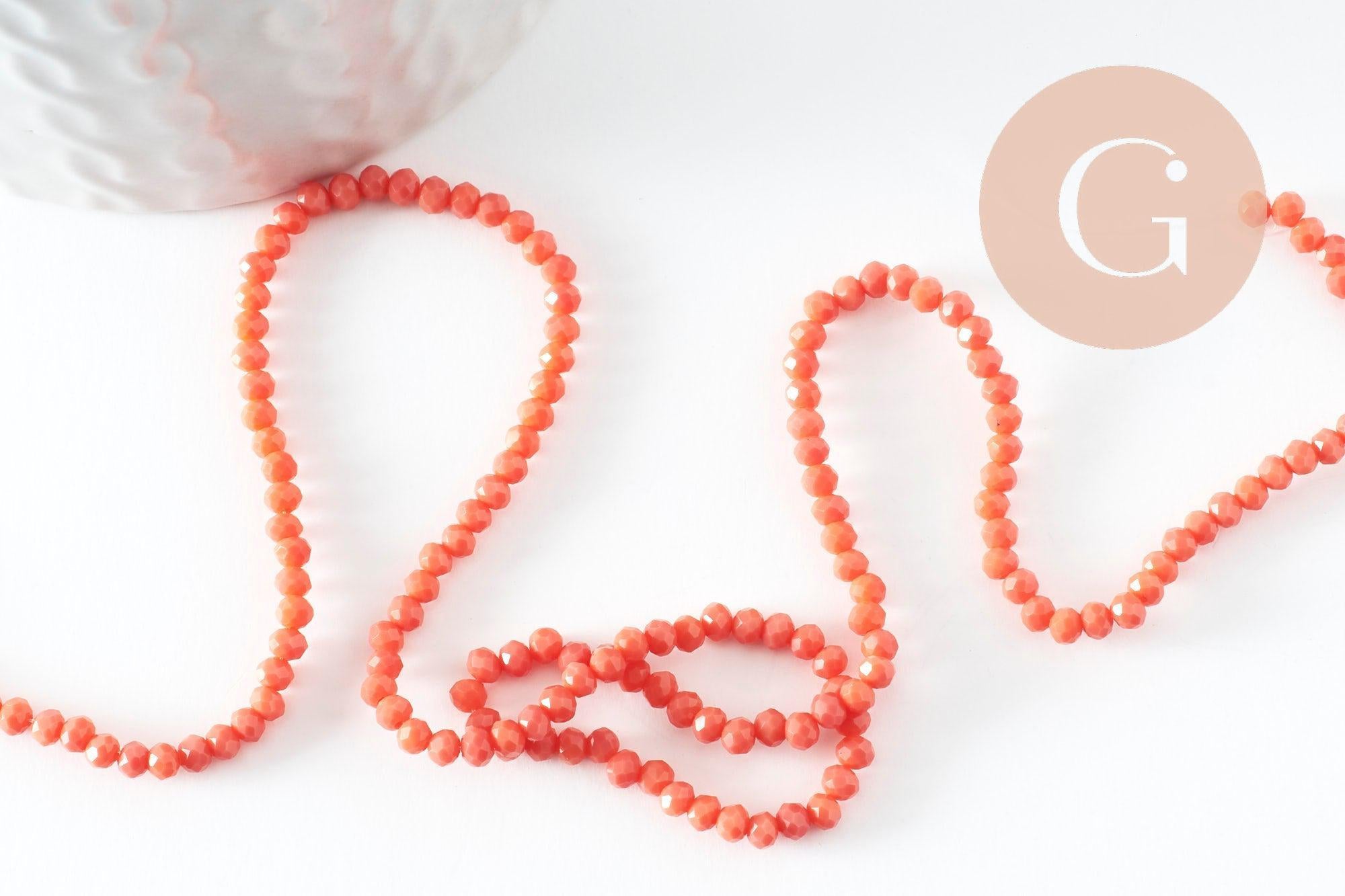 Un hilo de 41 cm de cuentas biconas facetadas de cristal naranja, ideal para realizar todas tus joyas.