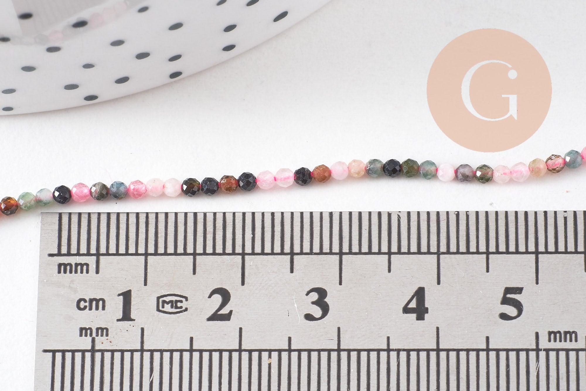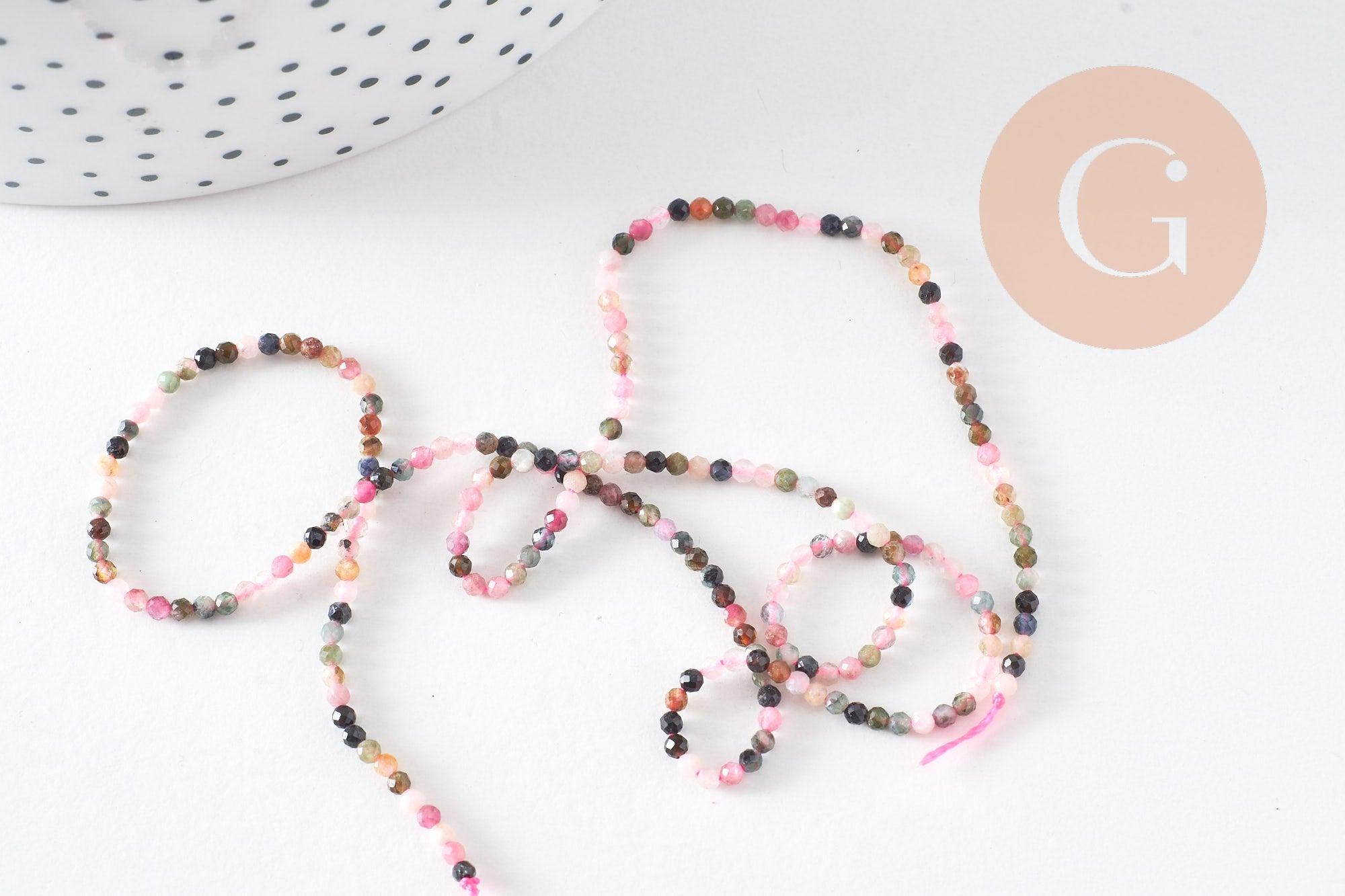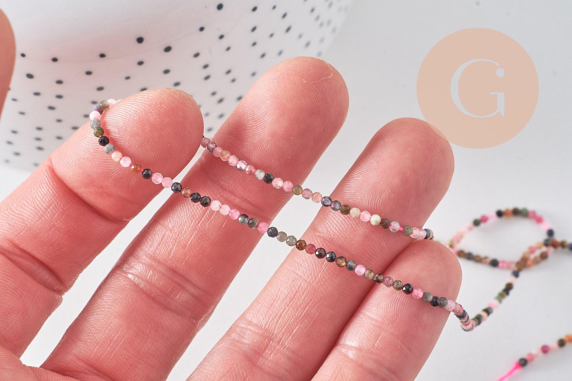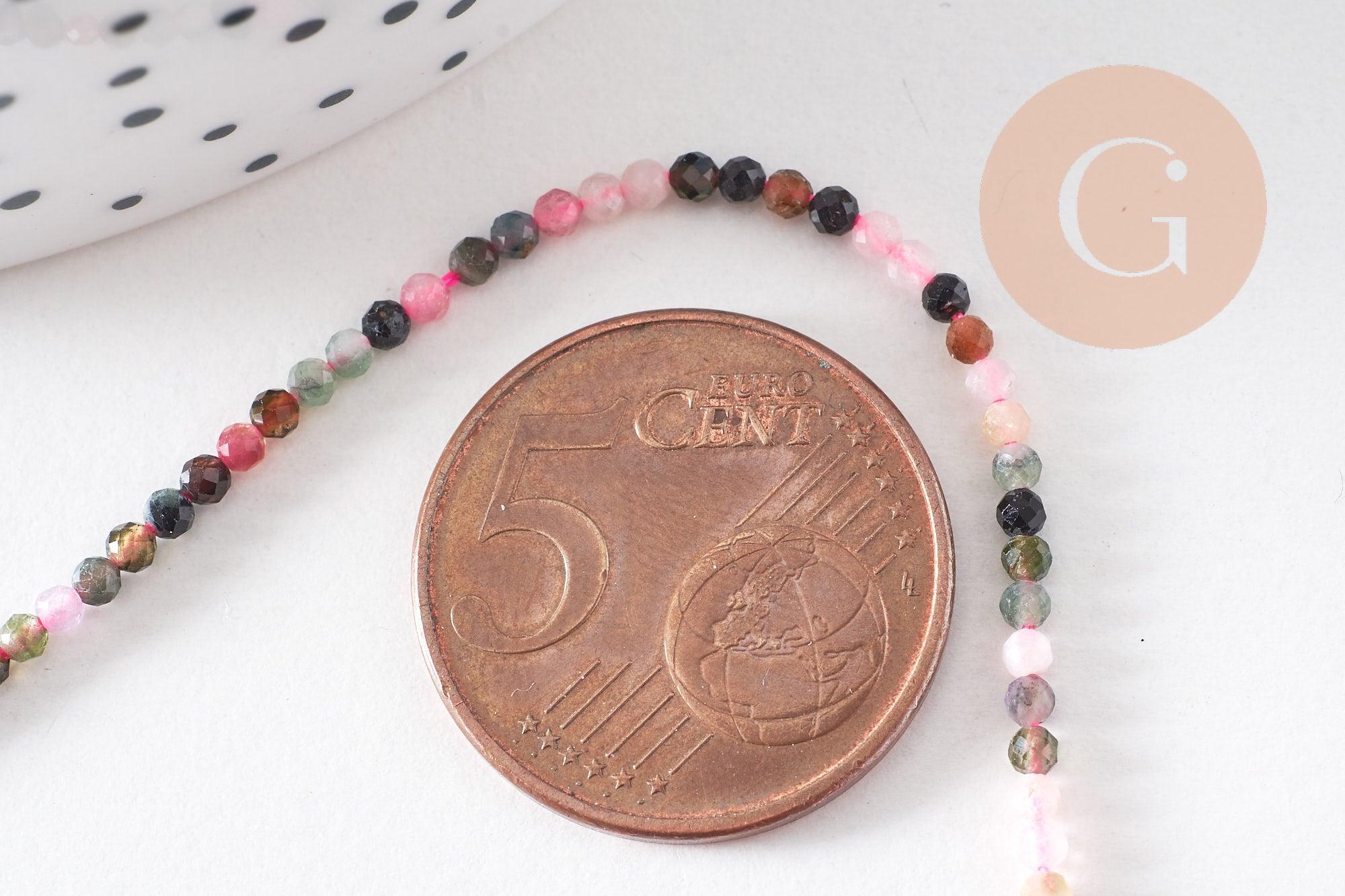 Añade un toque de magia mineral a tus creaciones con estas sublimes cuentas redondas facetadas de turmalina natural . Cada cuenta revela un tono único, que va del verde suave al rosa intenso, incluyendo tonos marrones y negros: un arcoíris natural para tus joyas DIY.