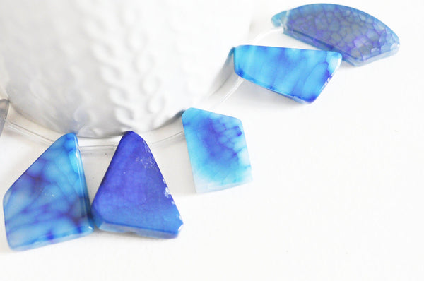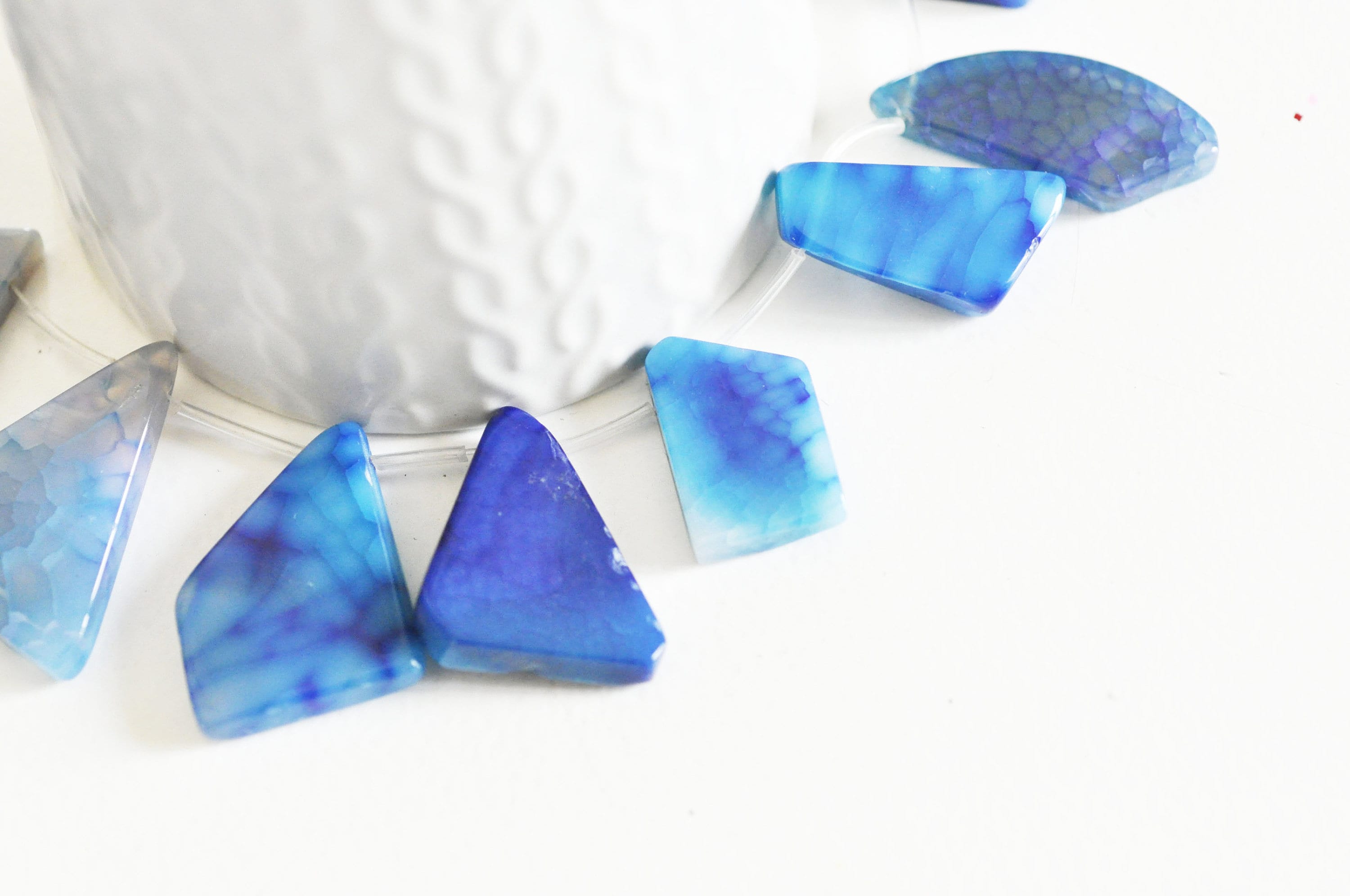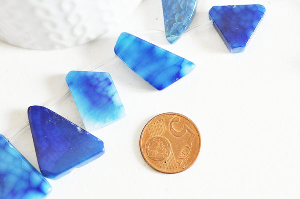 Cuentas triangulares de ágata azul en piedra natural para crear joyas de ágata natural, cuentas de piedra, 18-39 mm, 5 cuentas