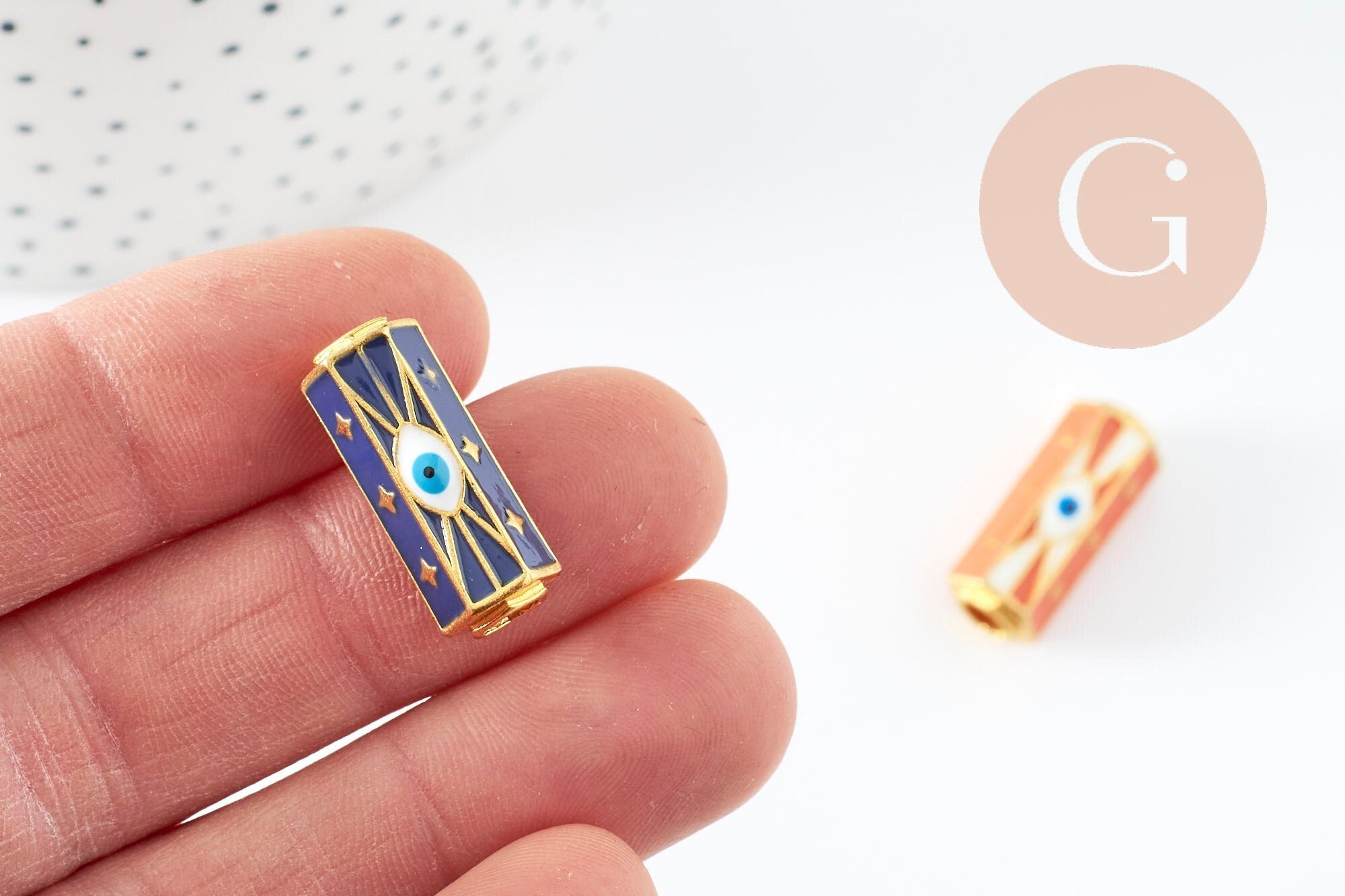 Talismán protector ocular, tubo de cuentas de esmalte coloreado, latón dorado, 22 mm, x1 (G9413)