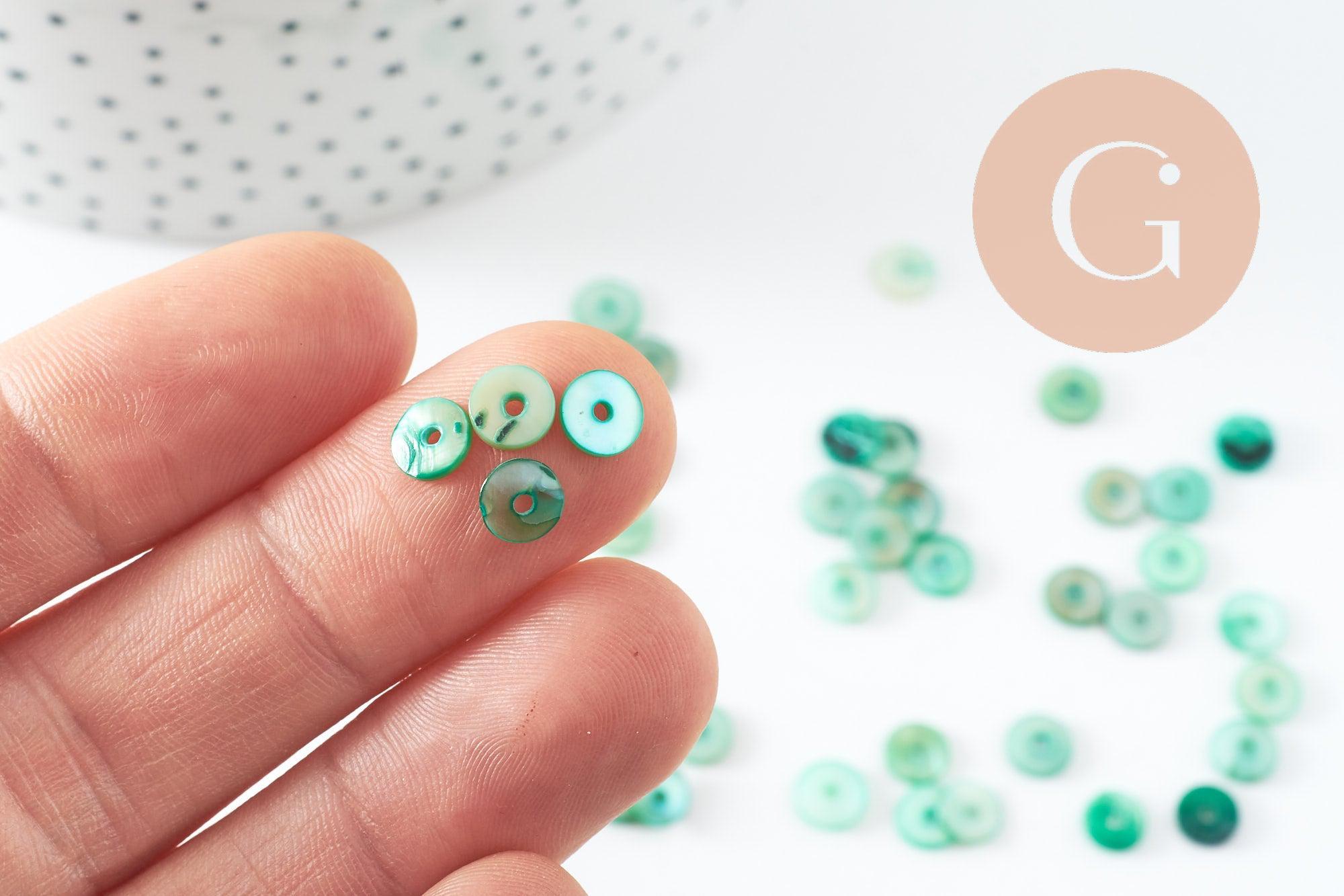 Bonitas perlas heishi en concha de nácar teñidas de verde claro