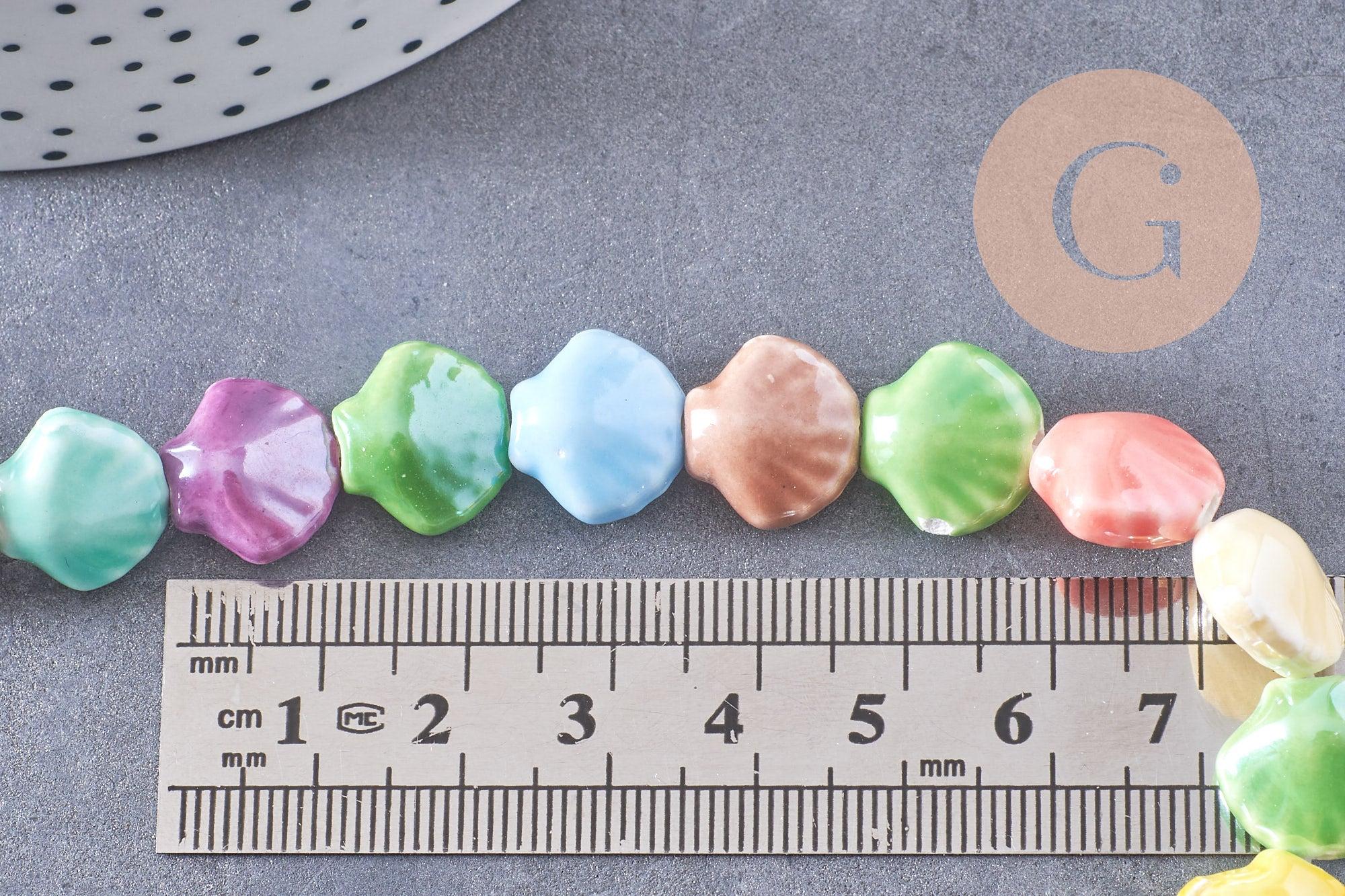 Aporta un toque marino y colorido a tus creaciones DIY con estas cuentas de porcelana con forma de concha . Su acabado suave y esmaltado les da un brillo único, ideal para joyas inspiradas en el océano y las vacaciones.