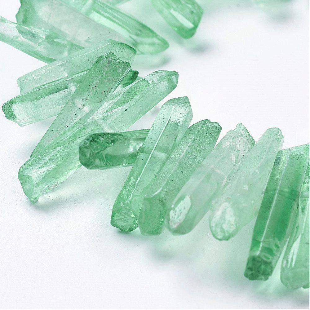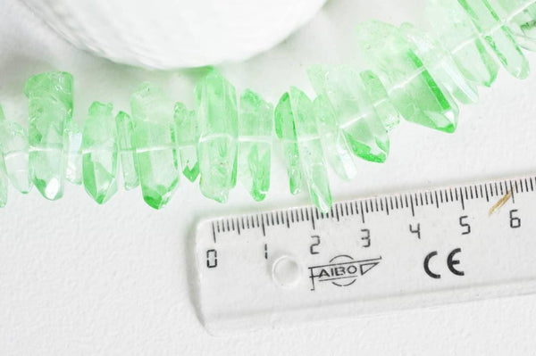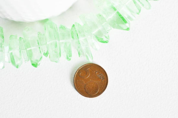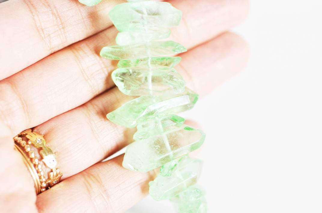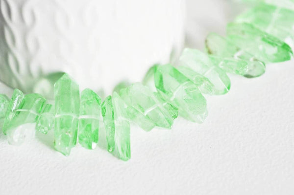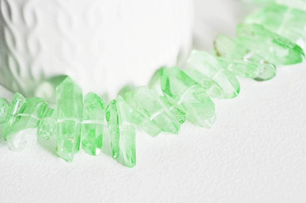 Enamórate de estas cuentas de cristal de roca teñidas de verde crudo.