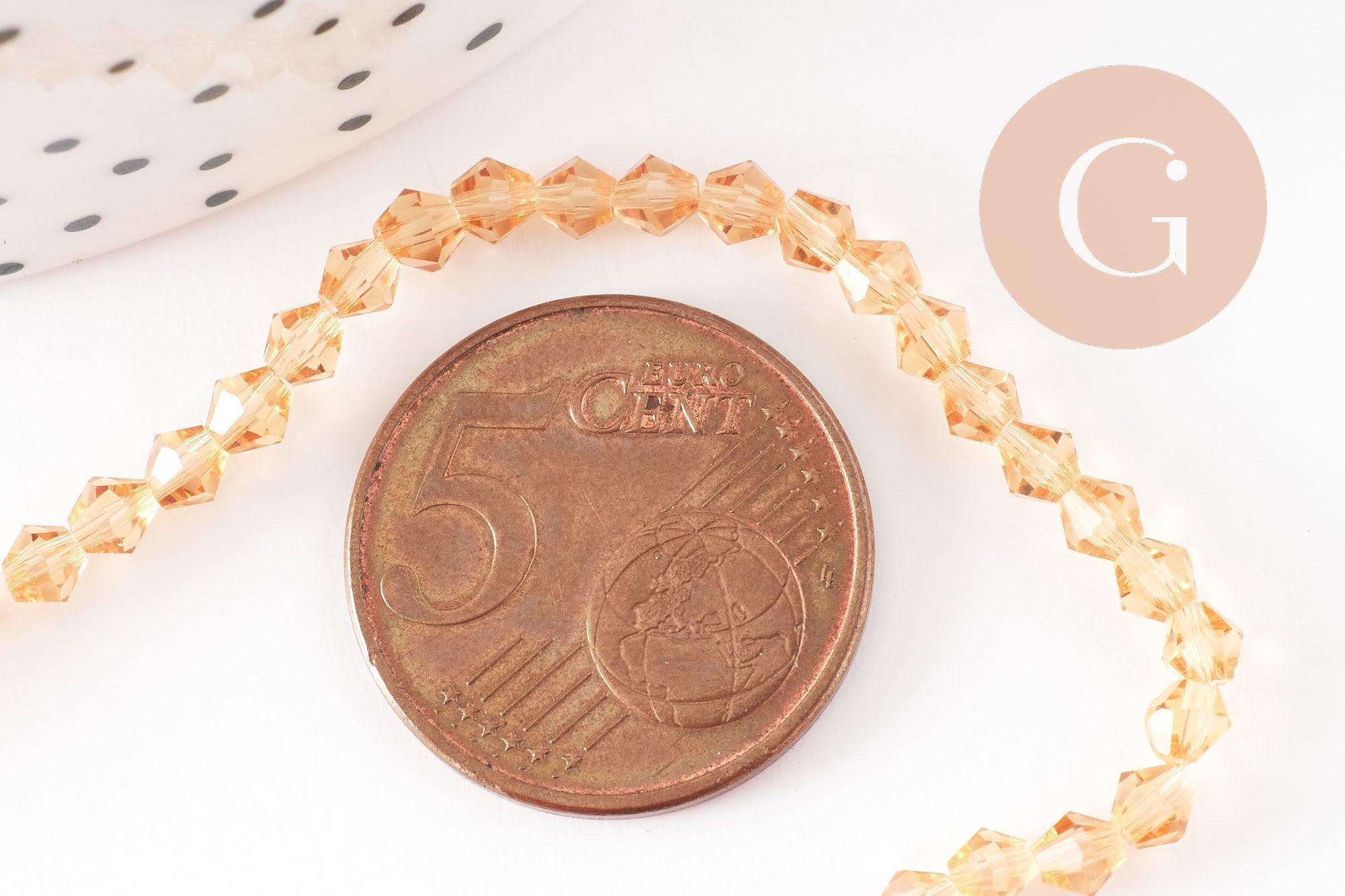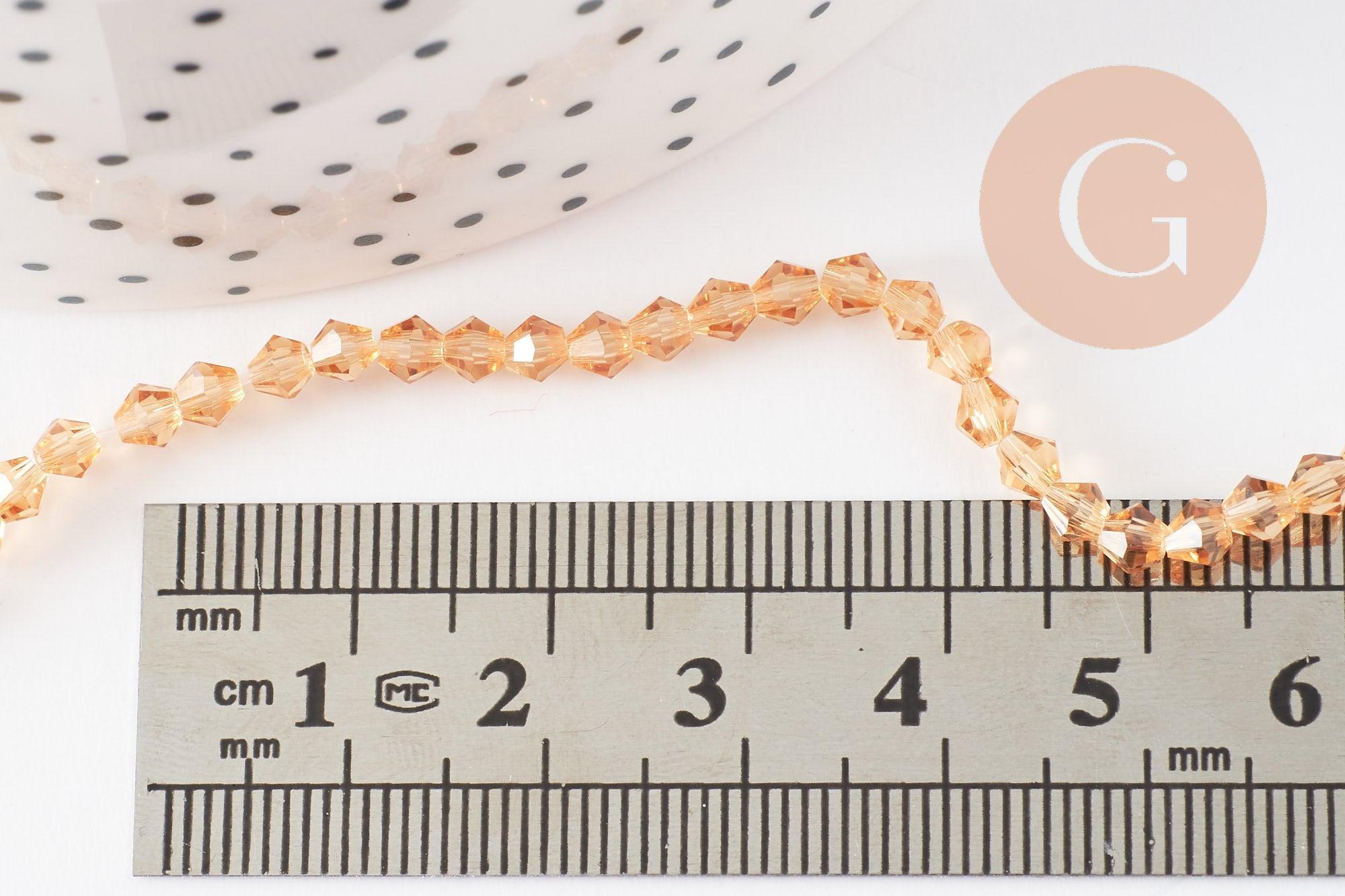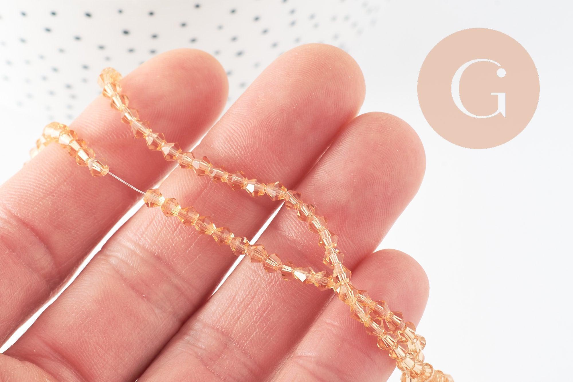 Cuentas de cristal facetado de color naranja transparente, cristal amarillo, bicono facetado, 3 mm, tira de 45 cm, x1 (G2600)