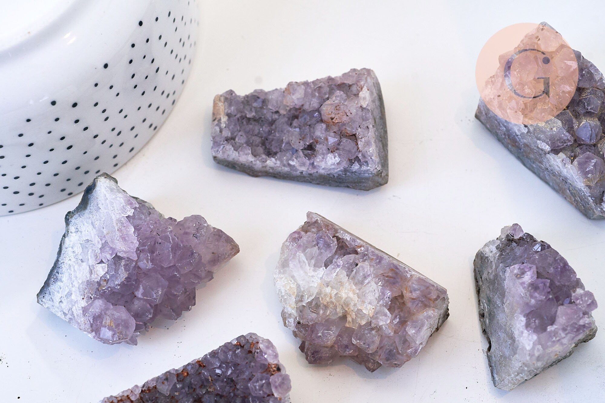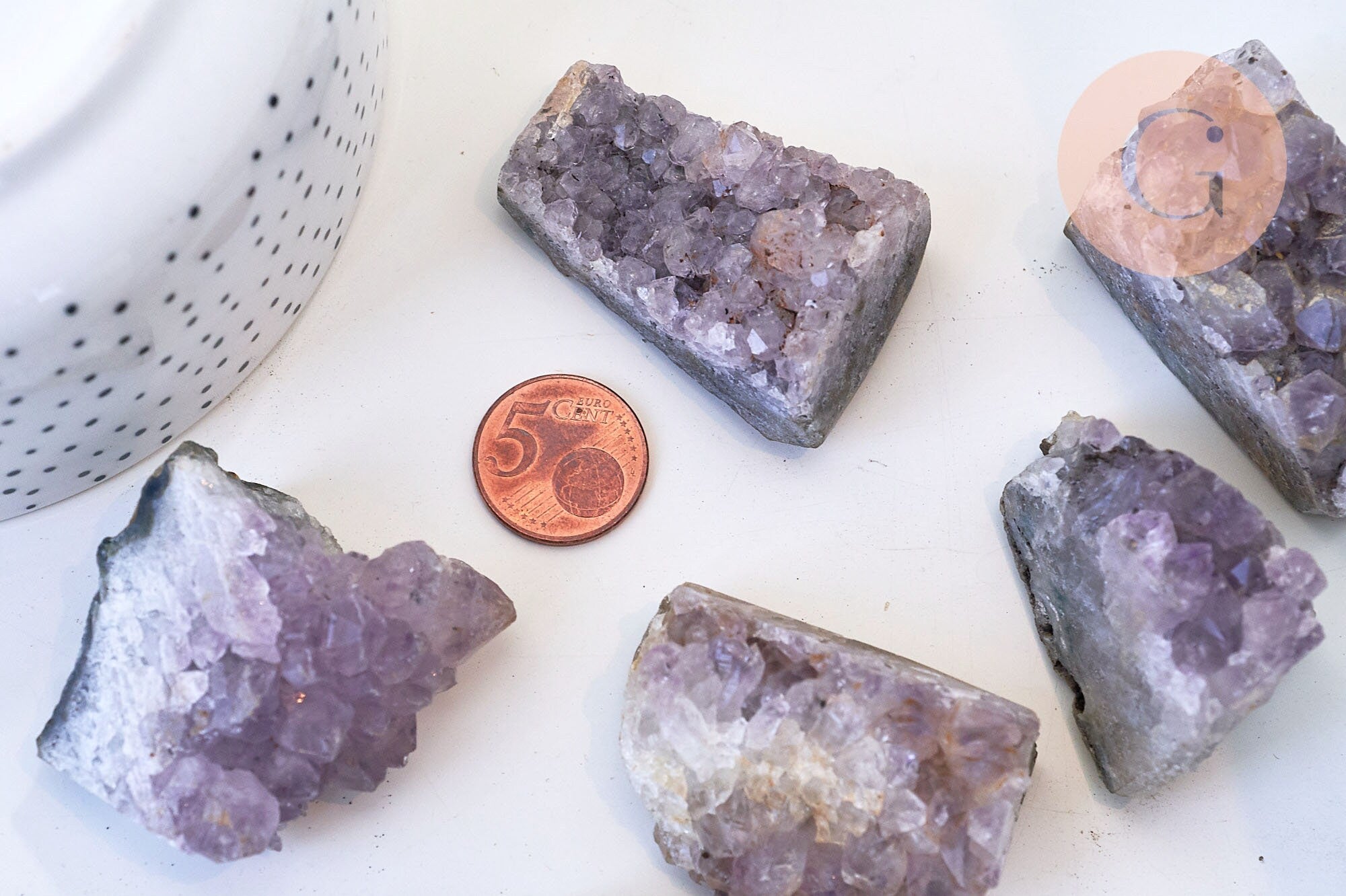 Pierre druse améthyste naturelle 25-47mm, pierre lithotthérapie décoration de la maison, x1 (G5766)