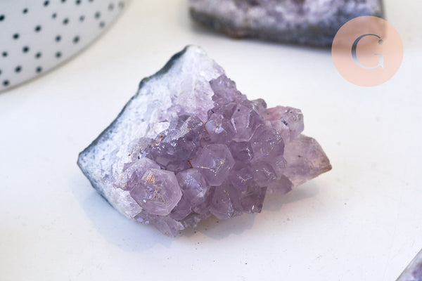Una drusa de amatista natural, para colocar cerca de ti, en casa o en la oficina.