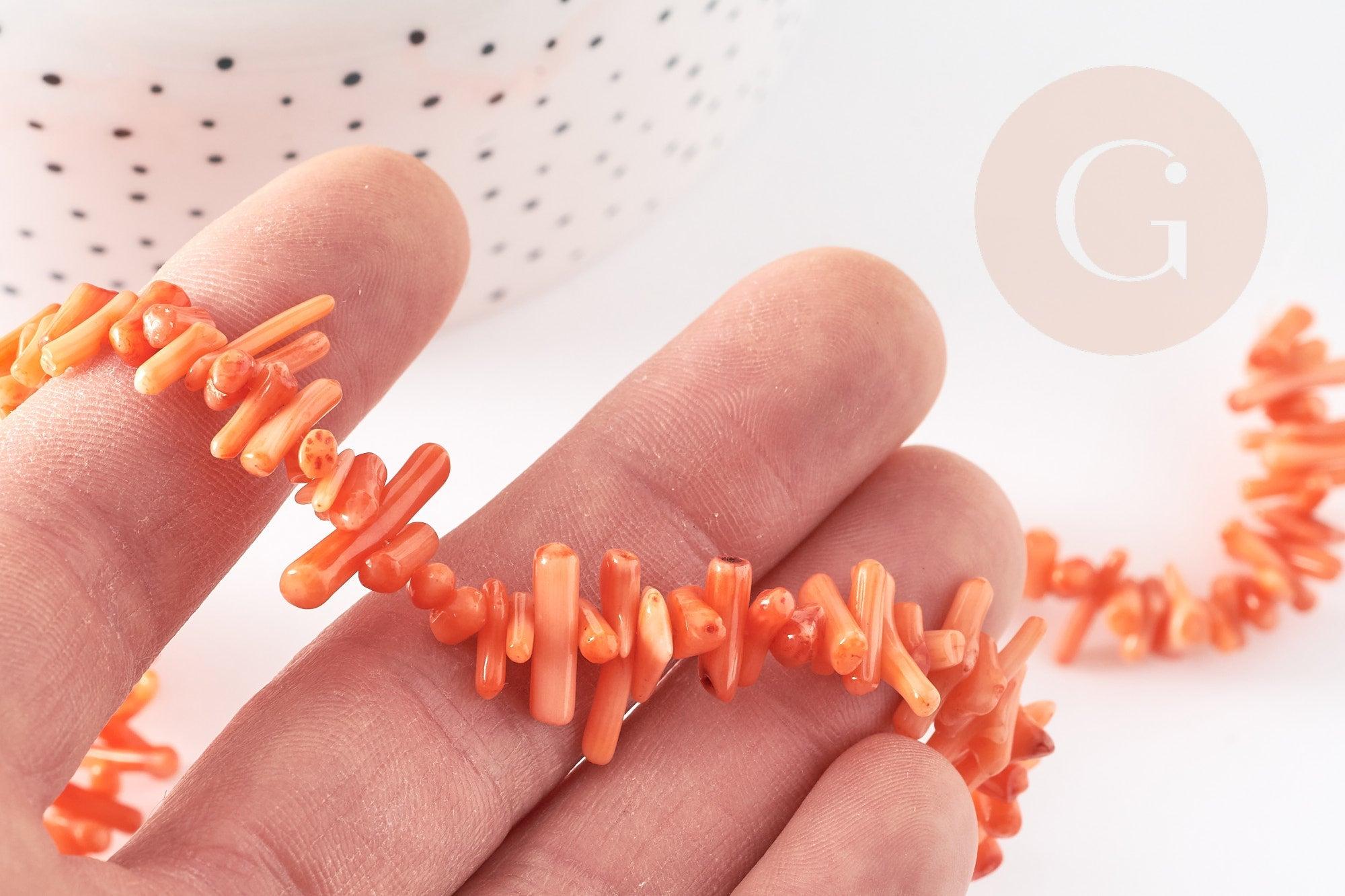 cuentas de coral naranja, suministros creativos, cuentas de coral, fabricación de joyas, coral natural, cuentas de concha, concha naranja, alambre de 38 cm