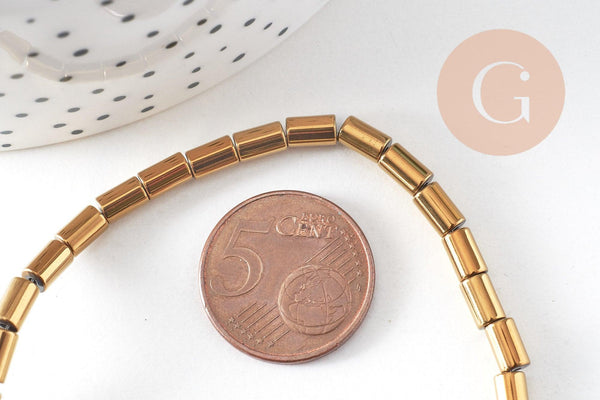 Cuentas de hematita dorada no magnéticas, cuentas de piedra en forma de columna, 6 x 4 mm, tira de 60 cuentas, x1 (G3626)